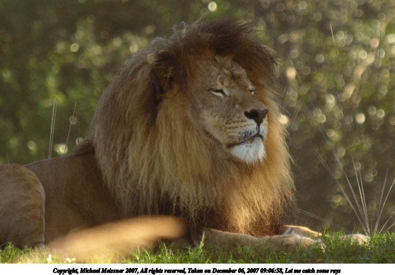 Picture #10: Let me catch some rays Thumb: 480x320, 37,964 bytes (38K) Small: 800x556, 72,638 bytes (71K), (html file) Copyright, Michael Meissner 2007, All rights reserved Olympus E-510 camera with Olympus 50-200mm f/2.8-3.5 lens and Olympus EC-14 (1.4x) f/4.9, ISO 200, 1/160 sec, 283.0mm, auto mode, natural color, SHQ, matrix metering, -1 sharpening, image stabilization, noise filter low 35mm equivalent focal length 567.0mm, EC-14 Programs used: LightZone, gimp Taken by Michael Meissner on December 06, 2007 09:06:58 Last modified on December 06, 2007 at 08:06 The file originally appeared in http://www.the-meissners.org/2007-small-albums/2007-wdw-animal-park/index.html. |