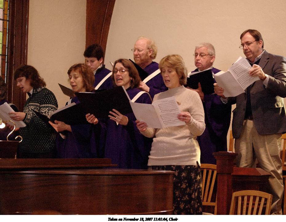 Picture #10: Choir Thumb: 465x350, 54,983 bytes (54K) Small: 930x723, 123,128 bytes (121K), (html file) Olympus E-510 camera with Olympus 50mm f/2.0 lens f/2.0, ISO 800, 1/100 sec, 50.0mm, auto mode, natural color, SHQ, tungsten light (3000K), matrix metering, image stabilization, noise reduction, noise filter low 35mm equivalent focal length 100.0mm Programs used: NoiseNinja, RAW, gimp Taken by Michael Meissner on November 18, 2007 11:01:04 Last modified on November 18, 2007 at 11:01 |