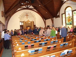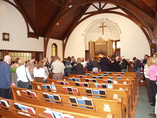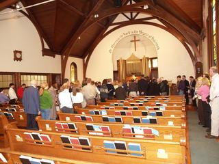 Picture #4: SACC decication #4 Thumb: 320x240, 42,851 bytes (42K) Small: 640x503, 98,329 bytes (97K), (html file) Copyright, Michael Meissner 2007, All rights reserved Olympus E-1 camera with Olympus 14-54mm f/2.8-3.5 lens f/2.8, ISO 400, FL-50 flash, 1/30 sec, 14.0mm, auto mode, SHQ, matrix metering, +2 sharpening 35mm equivalent focal length 28.0mm Extra equipment used: FL-50 flash, Demb Flip-it + diffuser Taken by Michael Meissner on November 18, 2007 11:11:36 Last modified on November 18, 2007 at 20:25 |