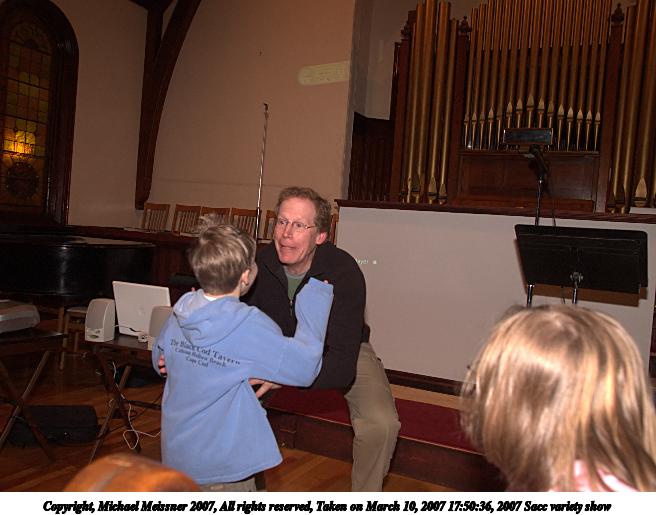 Picture #8: 2007 Sacc variety show #8 656x515, 59,976 bytes (59K), (html file) Copyright, Michael Meissner 2007, All rights reserved Olympus E-1 camera with Olympus 14-54mm f/2.8-3.5 lens f/4.0, ISO 400, FL-50 flash, 1/80 sec, 17.0mm, manual mode, SHQ, matrix metering, +2 sharpening 35mm equivalent focal length 34.0mm Extra equipment used: FL-50 flash Programs used: adjust-time, gimp Taken by Michael Meissner on March 10, 2007 17:50:40 Last modified on March 10, 2007 at 16:50 |