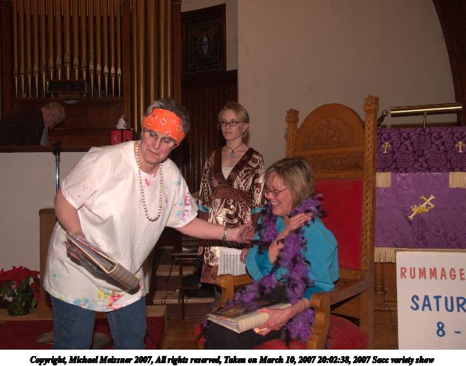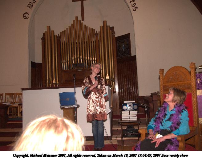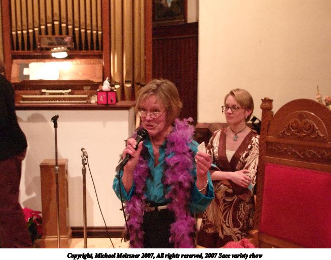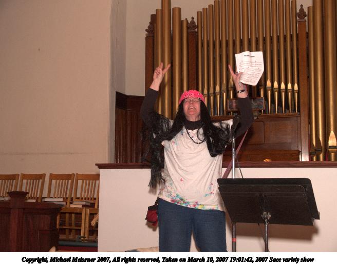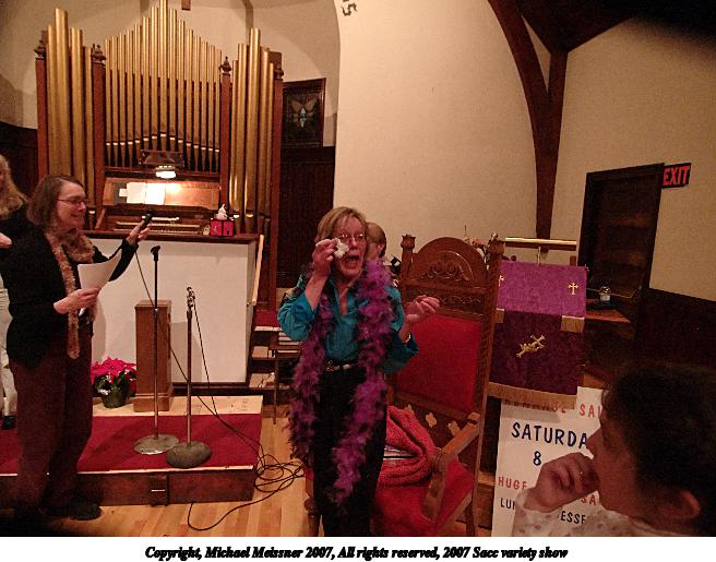 Picture #19: 2007 Sacc variety show #19 656x515, 78,306 bytes (77K), (html file) Copyright, Michael Meissner 2007, All rights reserved Olympus E-1 camera with Olympus 14-54mm f/2.8-3.5 lens f/4.0, ISO 400, FL-50 flash, 1/125 sec, 33.0mm, manual mode, SHQ, matrix metering, +2 sharpening 35mm equivalent focal length 66.0mm Extra equipment used: FL-50 flash Programs used: adjust-time Taken by Michael Meissner on March 10, 2007 19:12:32 Last modified on March 10, 2007 at 17:12 |