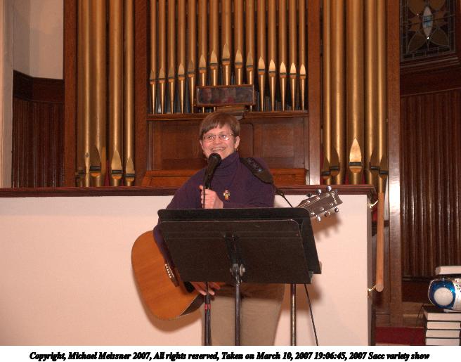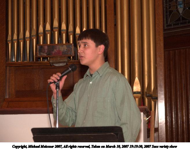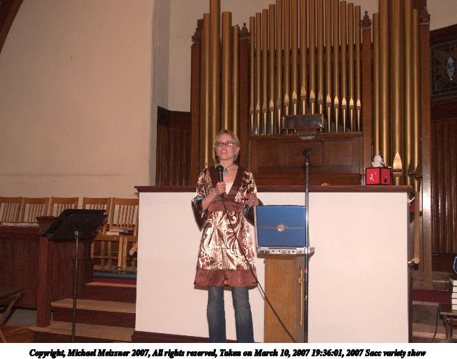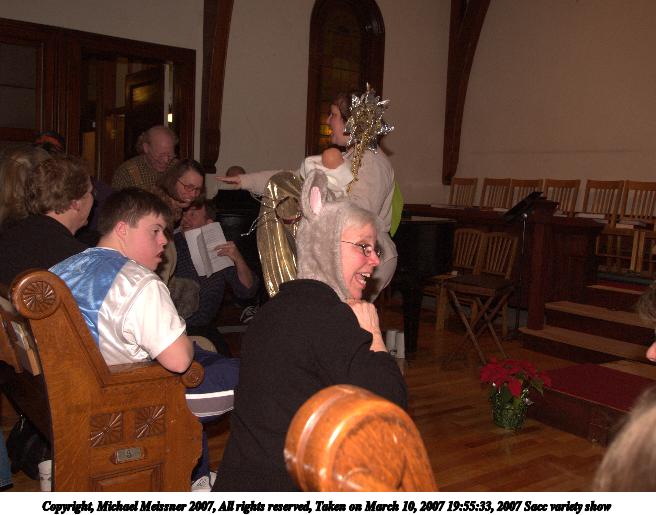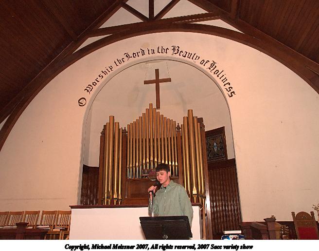 Picture #66: 2007 Sacc variety show #49 656x515, 75,298 bytes (74K), (html file) Copyright, Michael Meissner 2007, All rights reserved Olympus E-1 camera with Olympus 11-22mm f/2.8-3.5 lens f/4.0, ISO 400, FL-50 flash, 1/125 sec, 19.0mm, manual mode, SHQ, matrix metering, +2 sharpening 35mm equivalent focal length 38.0mm Extra equipment used: FL-50 flash Programs used: adjust-time Taken by Michael Meissner on March 10, 2007 20:04:08 Last modified on March 10, 2007 at 18:04 |