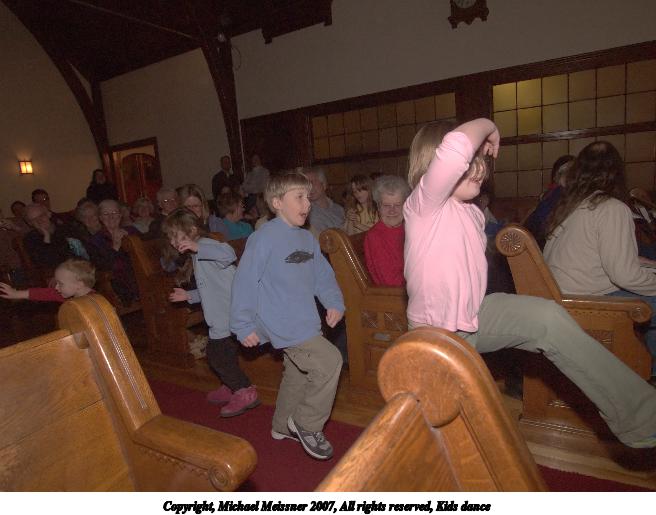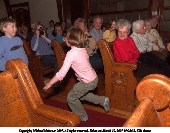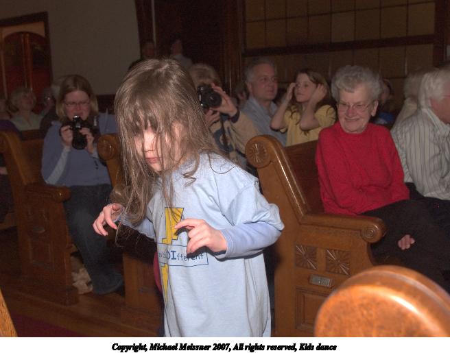 Picture #25: Kids dance 656x515, 75,683 bytes (74K), (html file) Copyright, Michael Meissner 2007, All rights reserved Olympus E-1 camera with Olympus 14-54mm f/2.8-3.5 lens f/4.0, ISO 400, FL-50 flash, 1/125 sec, 17.0mm, manual mode, SHQ, matrix metering, +2 sharpening 35mm equivalent focal length 34.0mm Extra equipment used: FL-50 flash Programs used: adjust-time Taken by Michael Meissner on March 10, 2007 19:25:32 Last modified on March 10, 2007 at 17:25 |