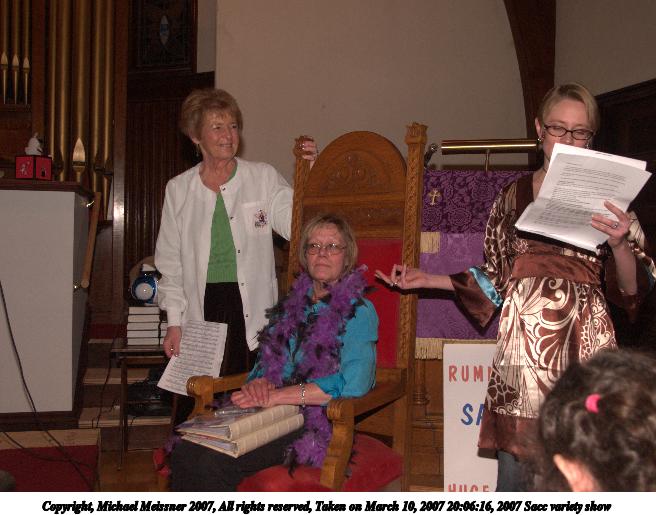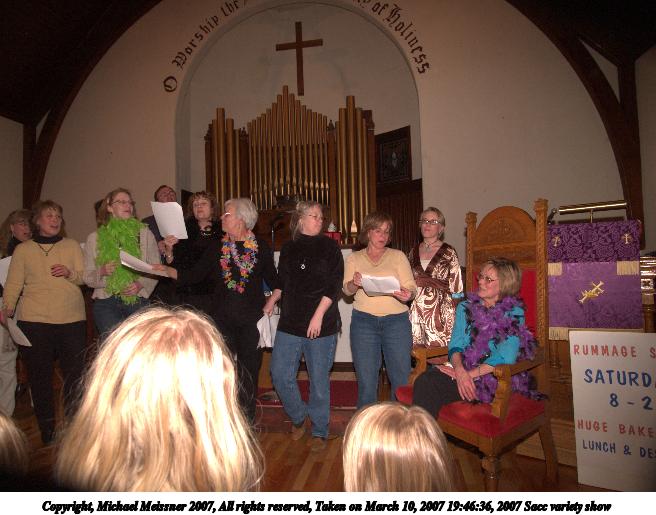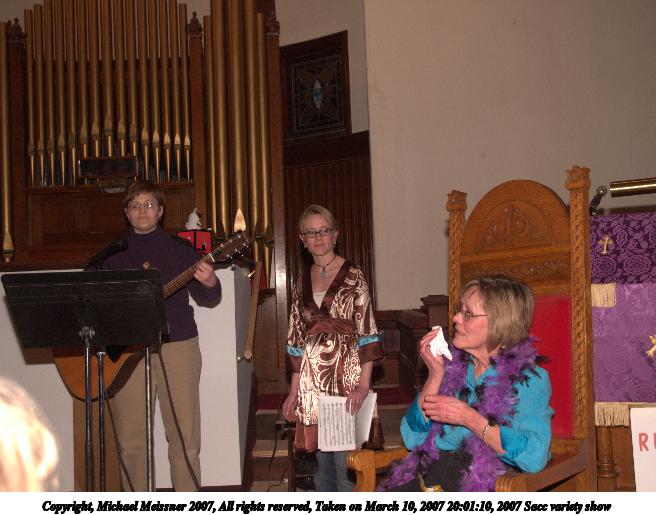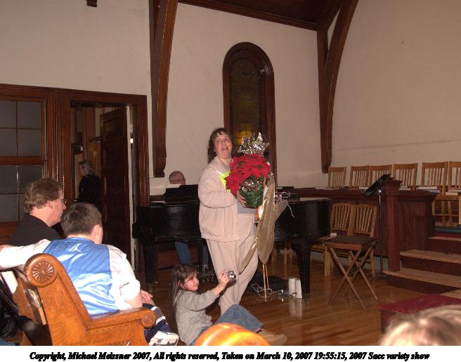 Picture #15: 2007 Sacc variety show #15 656x515, 70,392 bytes (69K), (html file) Copyright, Michael Meissner 2007, All rights reserved Olympus E-1 camera with Olympus 14-54mm f/2.8-3.5 lens f/3.2, ISO 400, FL-50 flash, 1/60 sec, 31.0mm, auto mode, SHQ, matrix metering, +2 sharpening 35mm equivalent focal length 62.0mm Extra equipment used: FL-50 flash Programs used: adjust-time Taken by Michael Meissner on March 10, 2007 19:06:45 Last modified on March 10, 2007 at 17:06 |