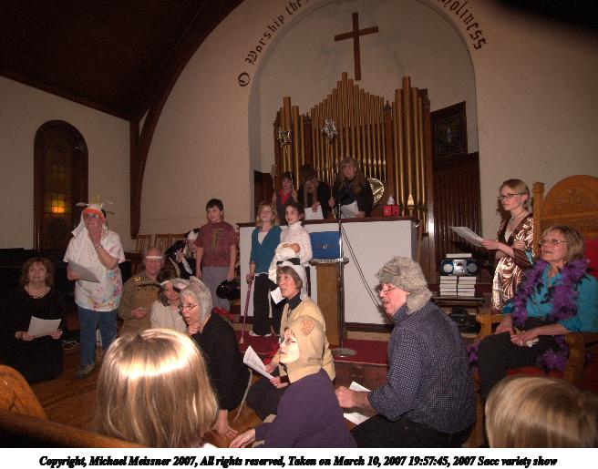 Picture #55: 2007 Sacc variety show #40 656x515, 71,753 bytes (71K), (html file) Copyright, Michael Meissner 2007, All rights reserved Olympus E-1 camera with Olympus 11-22mm f/2.8-3.5 lens f/4.0, ISO 400, FL-50 flash, 1/125 sec, 16.0mm, manual mode, SHQ, matrix metering, +2 sharpening 35mm equivalent focal length 32.0mm Extra equipment used: FL-50 flash Programs used: adjust-time Taken by Michael Meissner on March 10, 2007 19:54:09 Last modified on March 10, 2007 at 17:54 |