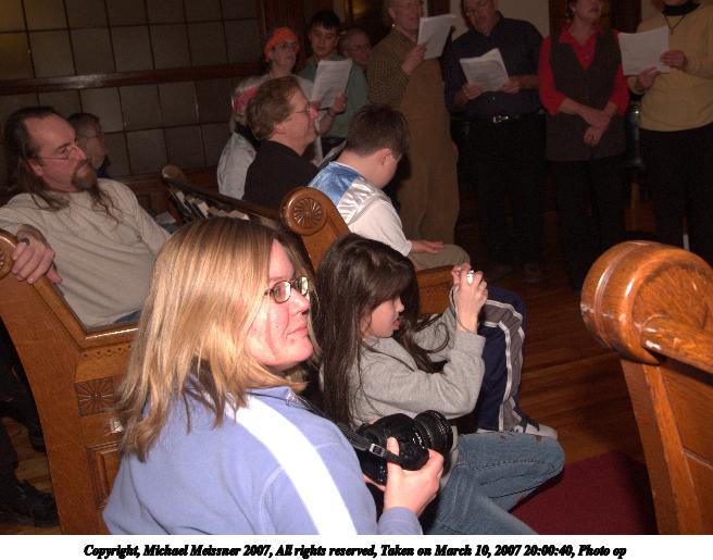 Picture #62: Photo op #2 656x515, 73,563 bytes (72K), (html file) Copyright, Michael Meissner 2007, All rights reserved Olympus E-1 camera with Olympus 11-22mm f/2.8-3.5 lens f/4.0, ISO 400, FL-50 flash, 1/125 sec, 18.0mm, manual mode, SHQ, matrix metering, +2 sharpening 35mm equivalent focal length 36.0mm Extra equipment used: FL-50 flash Programs used: adjust-time Taken by Michael Meissner on March 10, 2007 20:00:40 Last modified on March 10, 2007 at 18:00 |