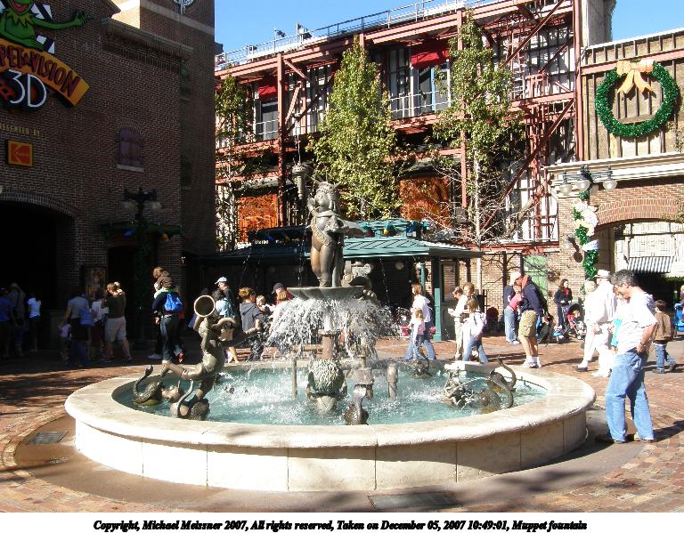 Picture #45: Muppet fountain 768x599, 149,758 bytes (147K), (html file) Copyright, Michael Meissner 2007, All rights reserved Olympus SP-550UZ camera f/5.6, ISO 50, 1/100 sec, 5.8mm, auto mode, HQ, matrix metering, +1 sharpening 35mm equivalent focal length 35.0mm Programs used: gimp Taken by Michael Meissner on December 05, 2007 10:49:01 Last modified on December 05, 2007 at 09:49 |