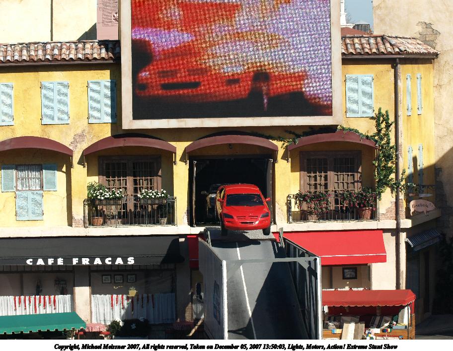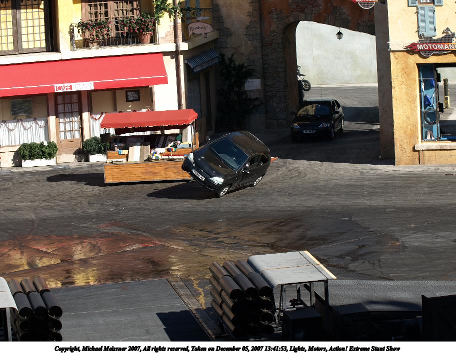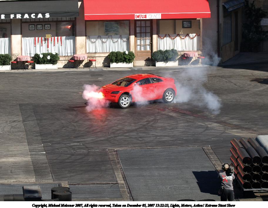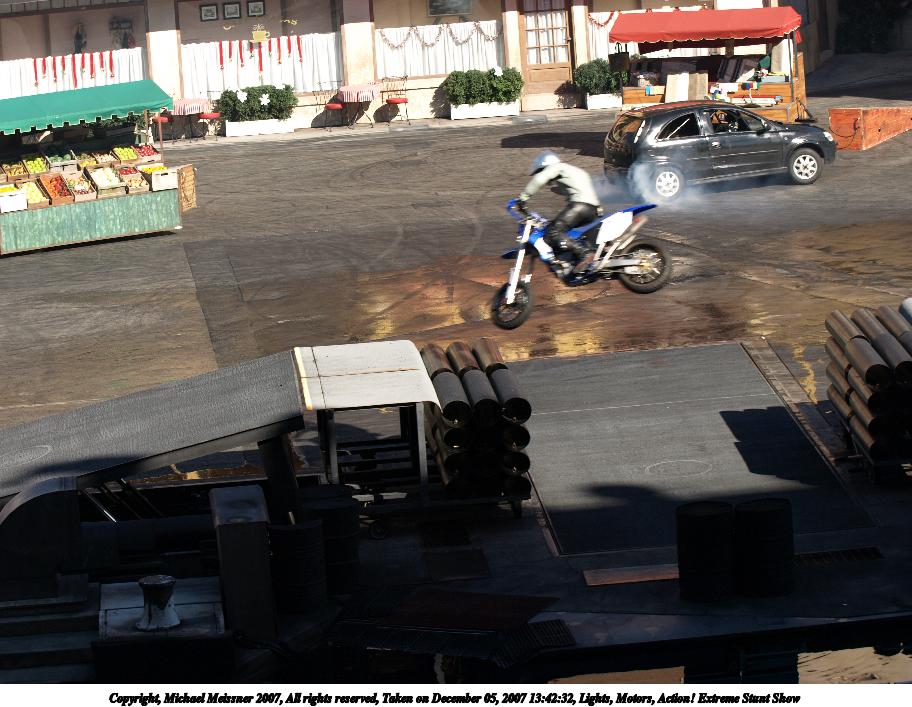 Picture #28: Lights, Motors, Action! Extreme Stunt Show #12 640x526, 73,782 bytes (73K), (html file) Copyright, Michael Meissner 2007, All rights reserved Olympus E-1 camera with Olympus 14-54mm f/2.8-3.5 lens f/7.1, ISO 100, 1/320 sec, 22.0mm, auto mode, SHQ, matrix metering, bias 0.3, +2 sharpening 35mm equivalent focal length 44.0mm Taken by Michael Meissner on December 05, 2007 13:39:05 Last modified on December 05, 2007 at 12:39 |