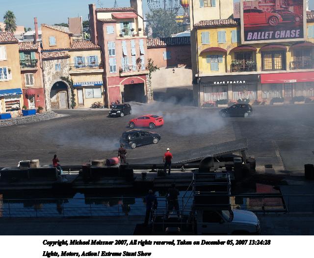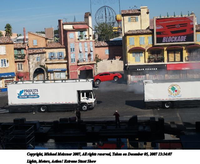 Picture #34: Lights, Motors, Action! Extreme Stunt Show #6 640x526, 73,195 bytes (72K), (html file) Copyright, Michael Meissner 2007, All rights reserved Olympus E-1 camera with Olympus 14-54mm f/2.8-3.5 lens f/7.1, ISO 100, 1/320 sec, 31.0mm, auto mode, SHQ, matrix metering, bias 0.3, +2 sharpening 35mm equivalent focal length 62.0mm Taken by Michael Meissner on December 05, 2007 13:25:04 Last modified on December 05, 2007 at 12:25 |