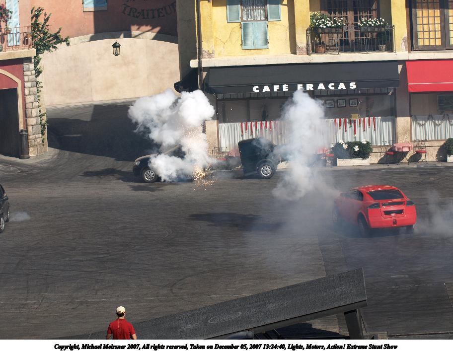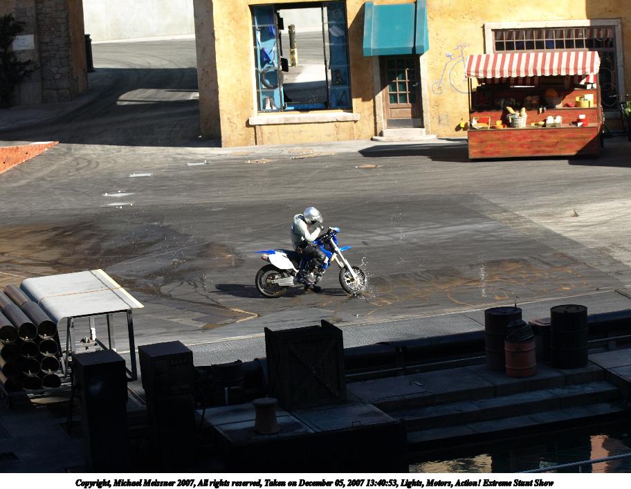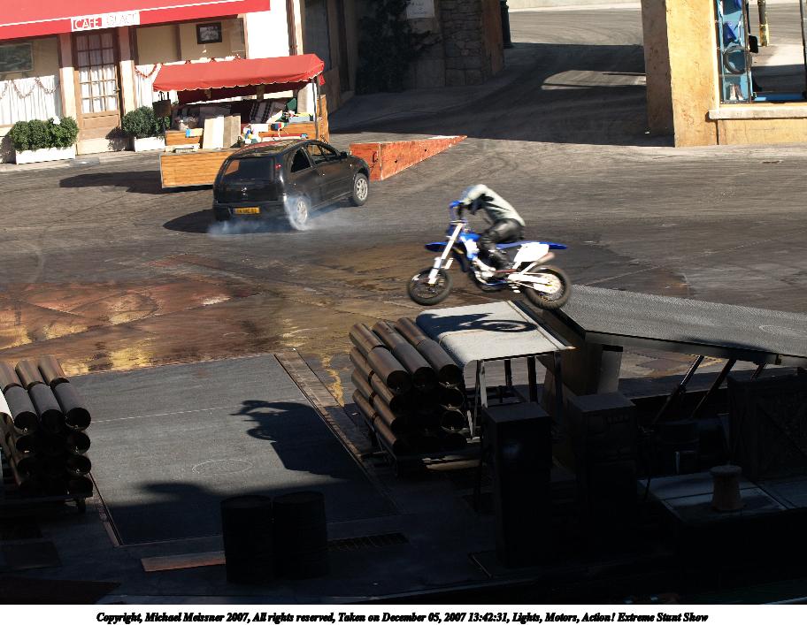 Picture #30: Lights, Motors, Action! Extreme Stunt Show #10 640x526, 79,236 bytes (78K), (html file) Copyright, Michael Meissner 2007, All rights reserved Olympus E-1 camera with Olympus 14-54mm f/2.8-3.5 lens f/8.0, ISO 100, 1/400 sec, 31.0mm, auto mode, SHQ, matrix metering, bias 0.3, +2 sharpening 35mm equivalent focal length 62.0mm Taken by Michael Meissner on December 05, 2007 13:34:08 Last modified on December 05, 2007 at 12:34 |