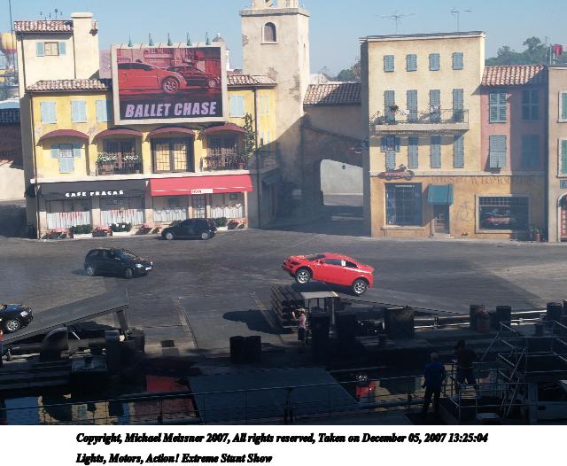 Picture #12: Lights, Motors, Action! Extreme Stunt Show #27 640x526, 85,792 bytes (84K), (html file) Copyright, Michael Meissner 2007, All rights reserved Olympus E-1 camera with Olympus 14-54mm f/2.8-3.5 lens f/6.3, ISO 100, 1/320 sec, 31.0mm, auto mode, SHQ, matrix metering, bias 0.3, +2 sharpening 35mm equivalent focal length 62.0mm Taken by Michael Meissner on December 05, 2007 13:44:31 Last modified on December 05, 2007 at 12:44 This picture is one of my favorites. |