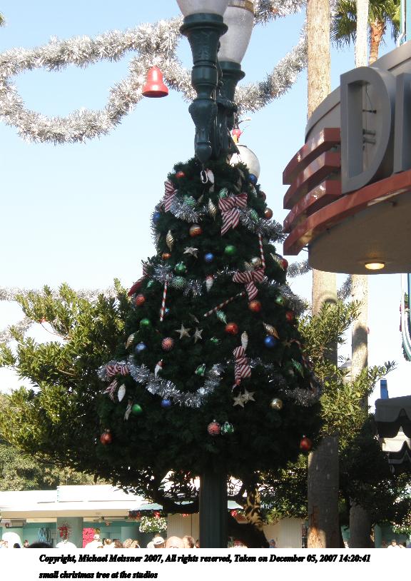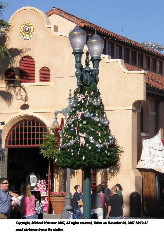 Picture #3: small christmas tree at the studios 576x814, 105,532 bytes (104K), (html file) Copyright, Michael Meissner 2007, All rights reserved Olympus SP-550UZ camera f/5.6, ISO 50, 1/250 sec, 20.2mm, auto mode, HQ, matrix metering, +1 sharpening 35mm equivalent focal length 121.0mm Programs used: rotate Taken by Michael Meissner on December 05, 2007 14:19:31 Last modified on December 05, 2007 at 13:19 |