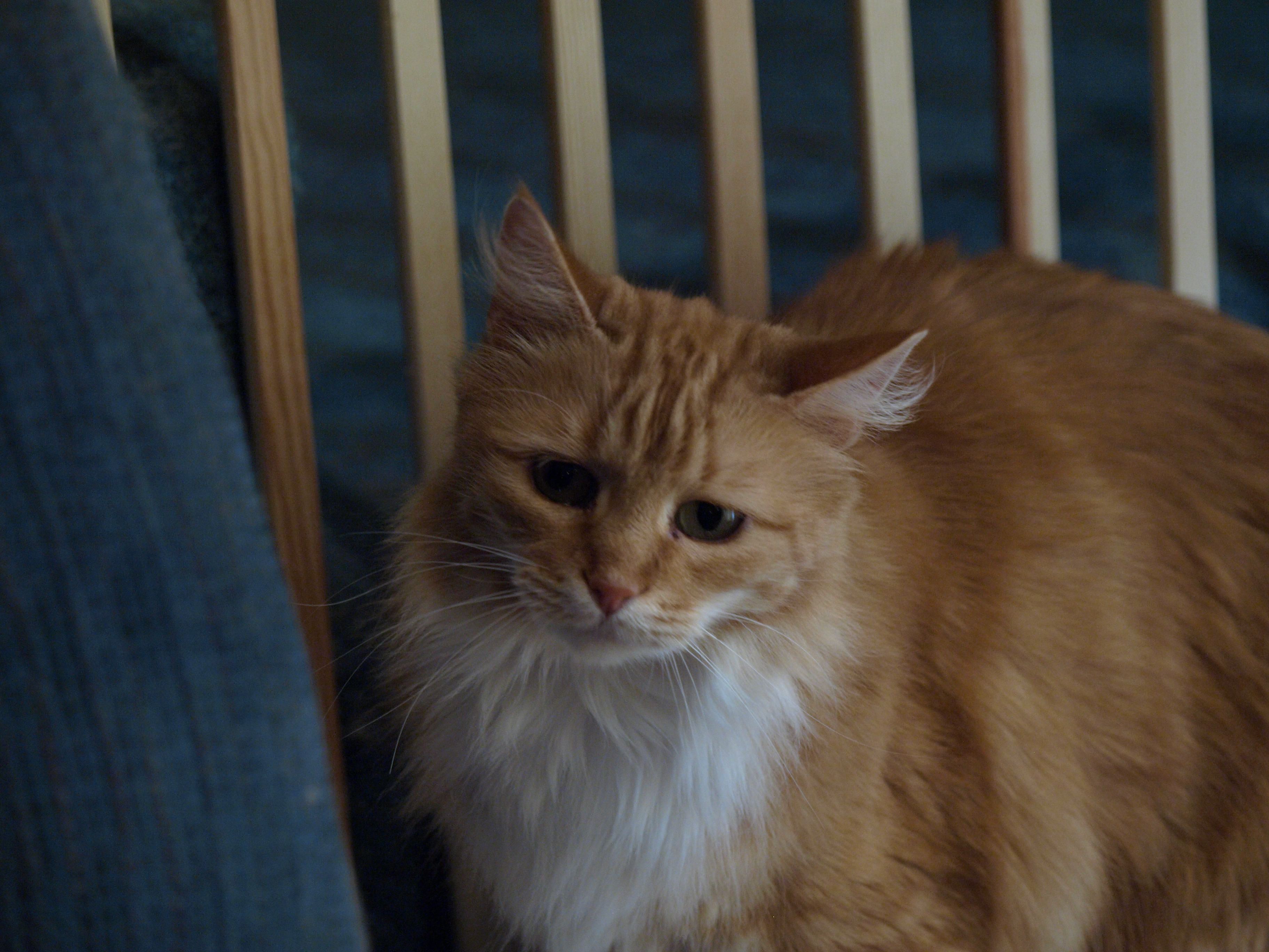 Picture #34: Ready to pounce Small: 1280x976, 110,944 bytes (109K), (html file) Large: 2560x1920, 3,143,700 bytes (3.0M), (html file) Copyright, Michael Meissner 2008, All rights reserved Olympus E-1 camera with Olympus 14-54mm f/2.8-3.5 lens f/3.5, ISO 400, 1/80 sec, 51.0mm, auto mode, SHQ, matrix metering, +2 sharpening 35mm equivalent focal length 102.0mm Programs used: NoiseNinja, gimp Taken by Michael Meissner on February 22, 2008 08:10:54 Last modified on February 22, 2008 at 08:10 |