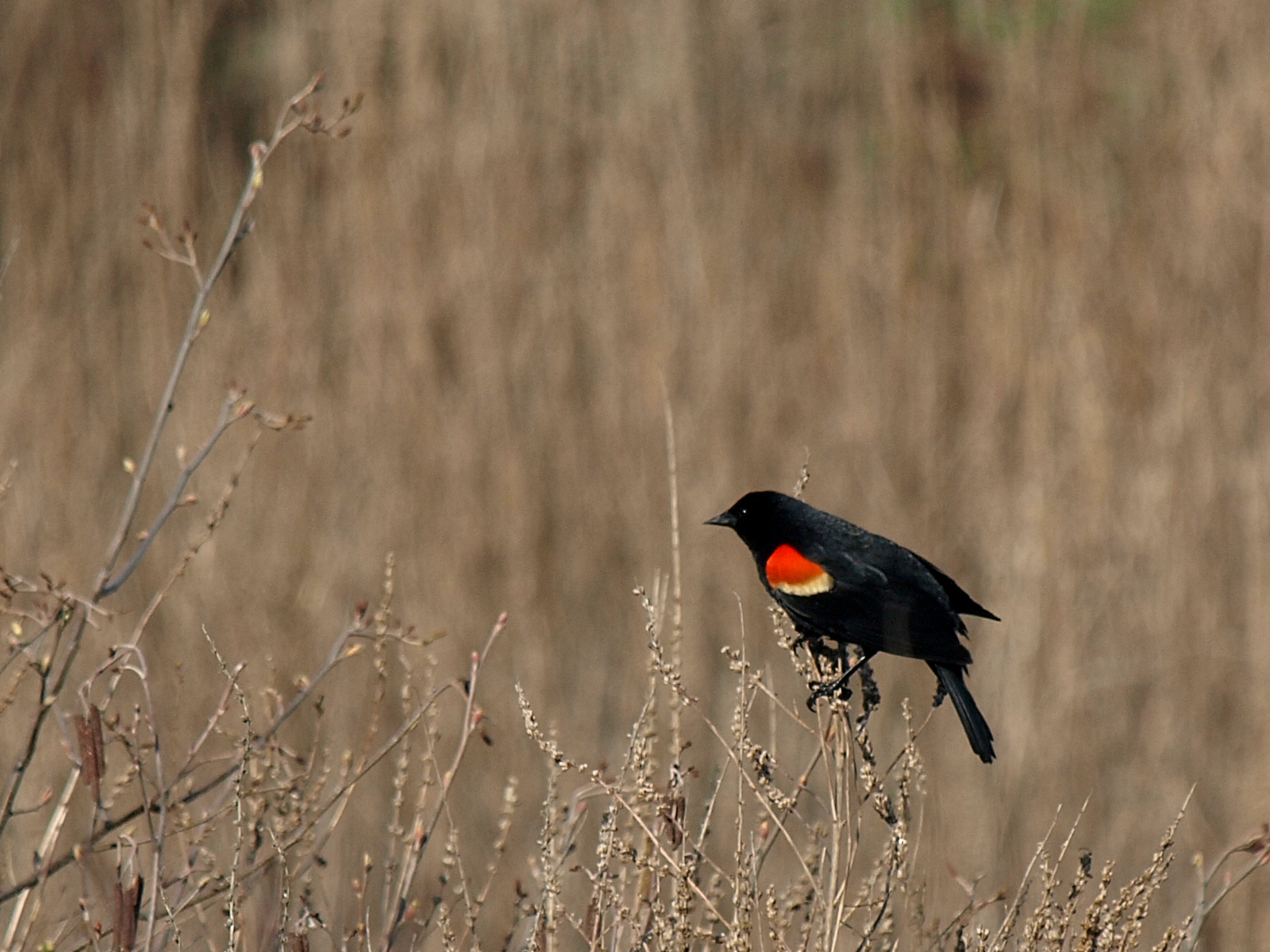 Picture #5: Red-wing blackbird #3 Small: 800x616, 69,318 bytes (68K), (html file) Large: 1600x1200, 1,357,390 bytes (1.3M), (html file) Copyright, Michael Meissner 2008, All rights reserved Olympus E-510 camera with Olympus 50-200mm f/2.8-3.5 lens and Olympus EC-14 (1.4x) f/7.1, ISO 200, 1/400 sec, 283.0mm, auto mode, natural color, SHQ, matrix metering, -1 sharpening, IS1 (All Direction Shake IS), noise filter low 35mm equivalent focal length 567.0mm, EC-14 Programs used: gimp Taken by Michael Meissner on April 26, 2008 08:26:45 Last modified on April 26, 2008 at 08:46 |