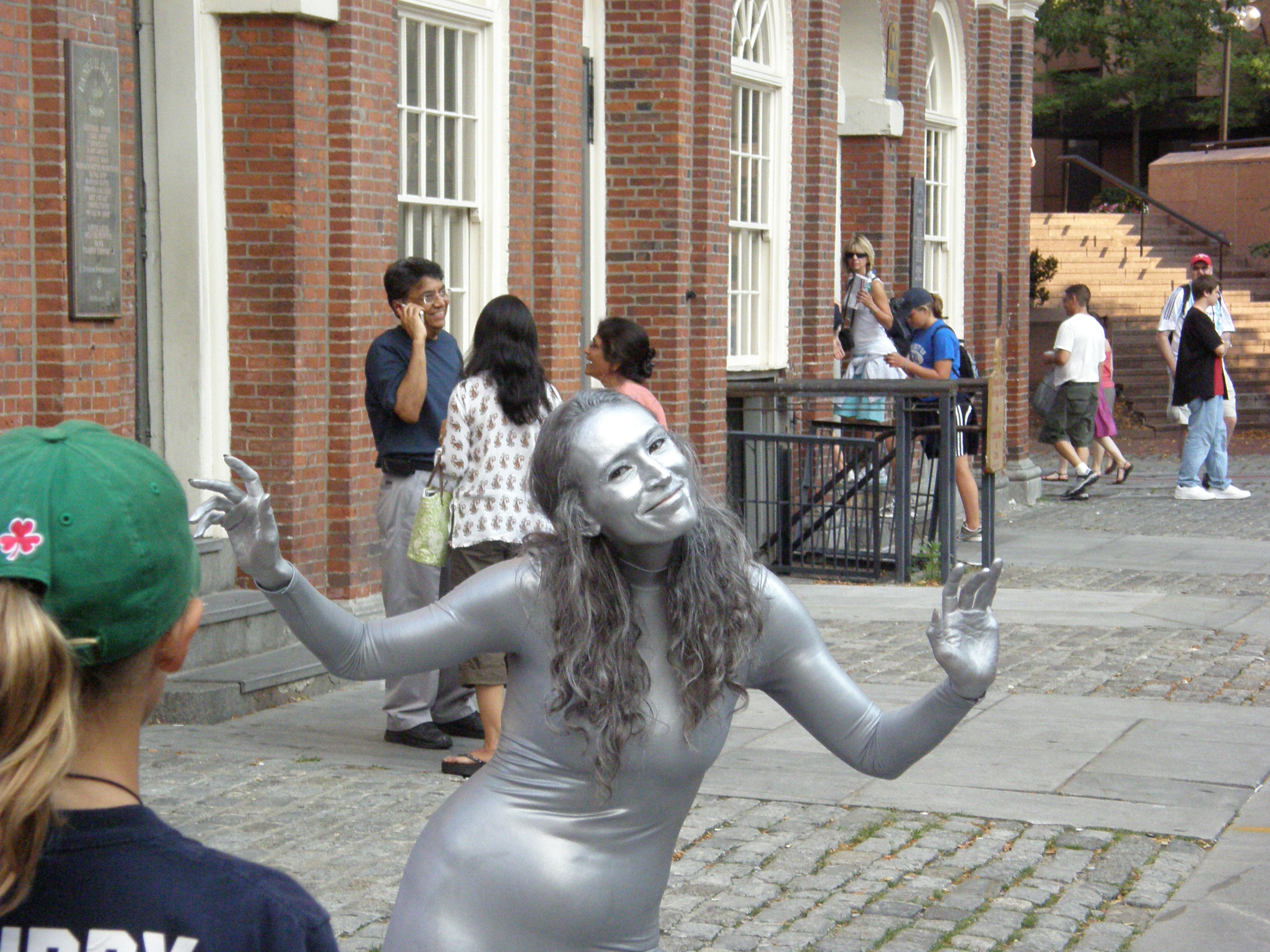 Picture #43: Silver performance artist #3 Thumb: 288x384, 35,656 bytes (35K) Small: 576x784, 92,797 bytes (91K), (html file) Large: 2304x3072, 4,721,752 bytes (4.5M), (html file) Copyright, Michael Meissner 2008, All rights reserved Olympus SP-550UZ camera f/3.5, ISO 200, 1/500 sec, 9.8mm, auto mode, HQ, matrix metering 35mm equivalent focal length 59.0mm Programs used: rotate Taken by Michael Meissner on July 26, 2008 17:56:35 Last modified on August 03, 2008 at 21:56 |