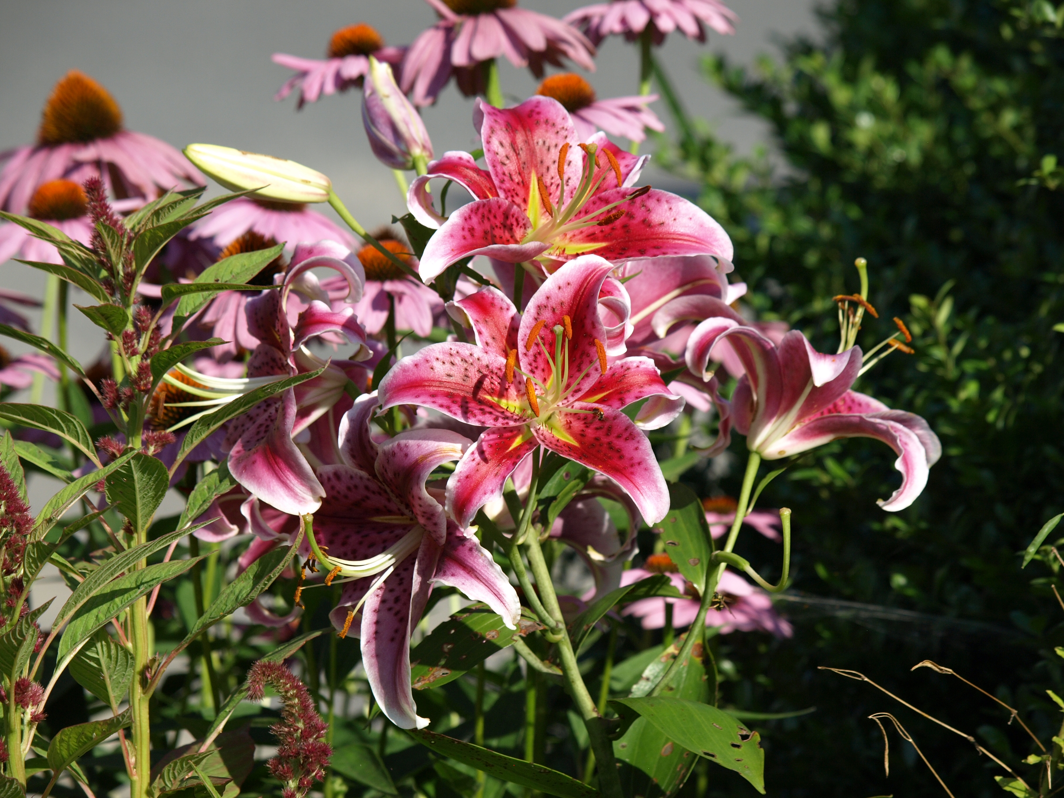 Picture #1: Lilies Thumb: 456x342, 54,590 bytes (54K) Small: 912x700, 132,942 bytes (130K), (html file) Large: 3648x2736, 6,630,179 bytes (6.3M), (html file) Copyright, Michael Meissner 2008, All rights reserved Olympus E-510 camera with Olympus 50-200mm f/2.8-3.5 lens f/5.0, ISO 200, 1/640 sec, 92.0mm, auto mode, natural color, SHQ, matrix metering, -1 sharpening, IS1 (All Direction Shake IS), noise filter low 35mm equivalent focal length 184.0mm Taken by Michael Meissner on August 05, 2008 16:57:53 Last modified on October 15, 2008 at 22:00 |