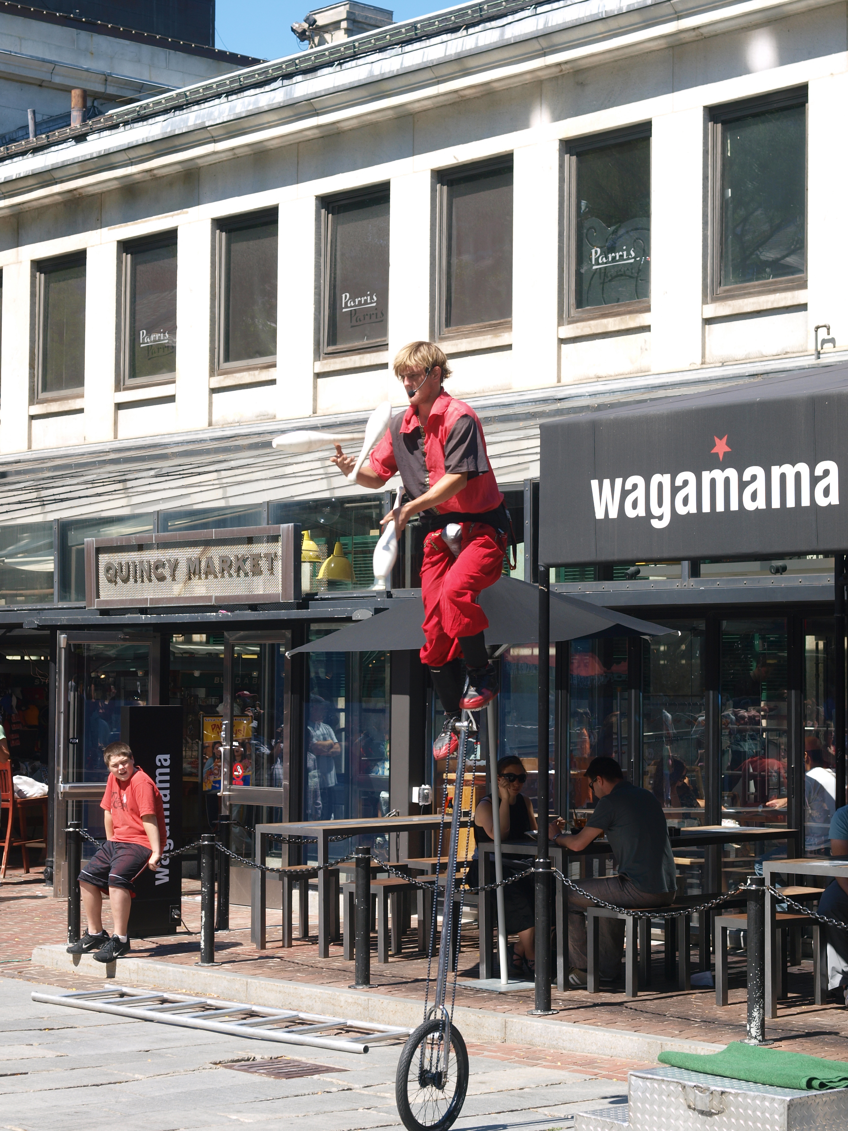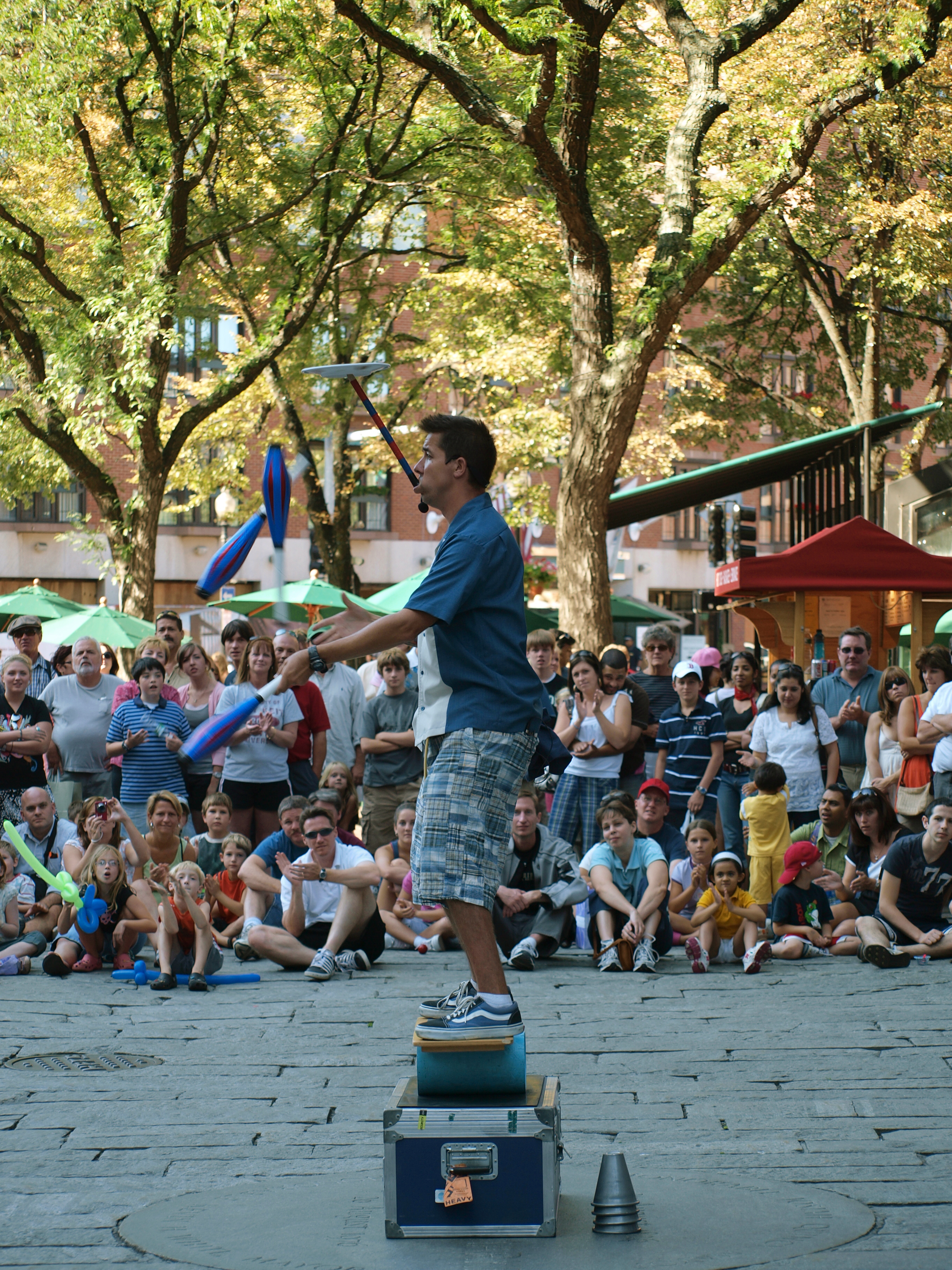 Picture #15: Unicycling and juggling Small: 684x928, 149,964 bytes (147K), (html file) Large: 2736x3648, 6,001,814 bytes (5.7M), (html file) Copyright, Michael Meissner 2008, All rights reserved Olympus E-3 camera with Olympus 14-54mm f/2.8-3.5 lens f/5.6, ISO 100, 1/250 sec, 38.0mm, auto mode, natural color, matrix metering, IS1 (All Direction Shake IS) 35mm equivalent focal length 76.0mm Programs used: rotate Taken by Michael Meissner on September 01, 2008 12:24:37 Last modified on October 16, 2008 at 21:42 |