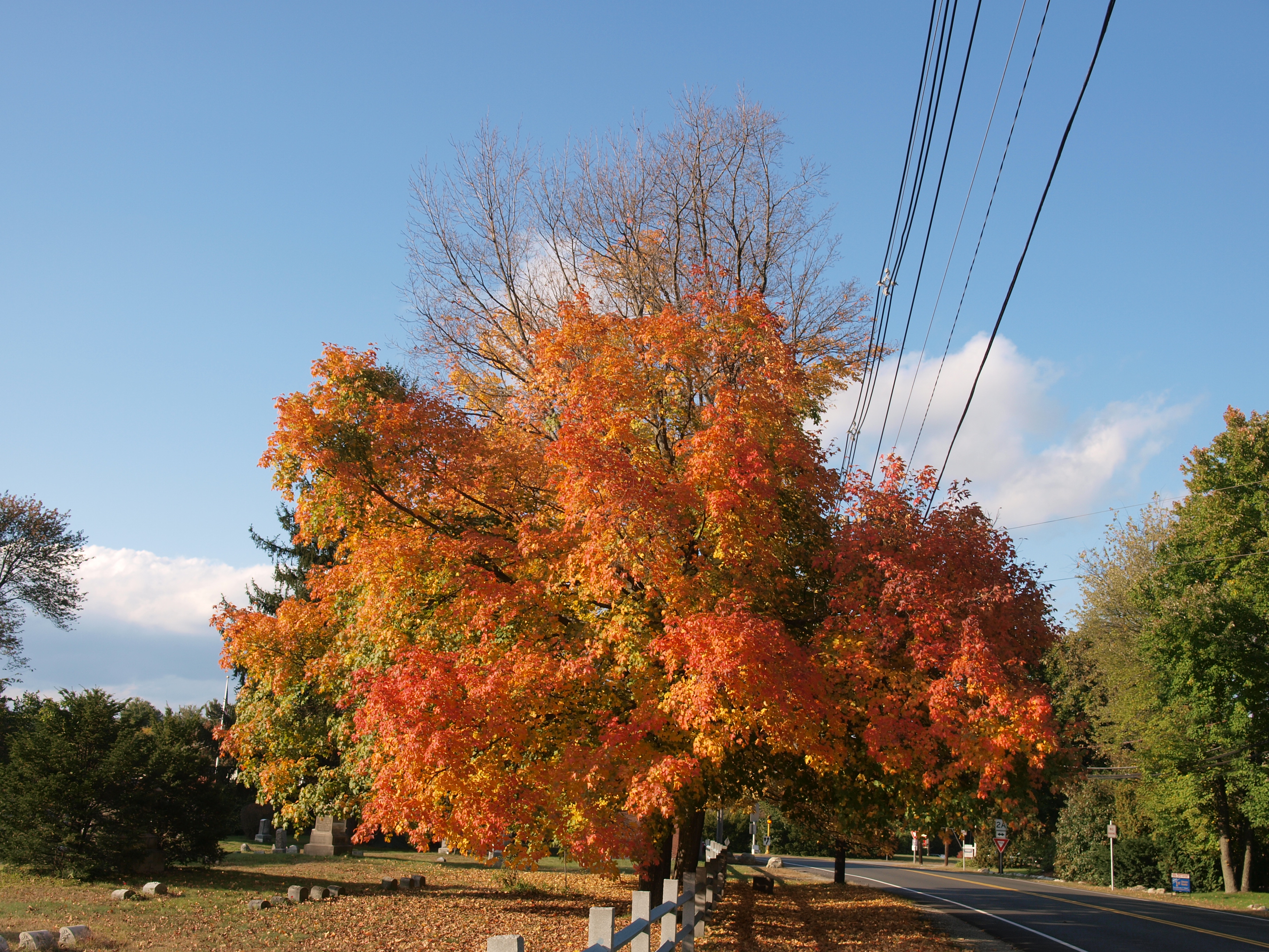 Picture #70: Andover cemetary in fall #9 Small: 912x700, 209,870 bytes (205K), (html file) Large: 3648x2736, 10,013,310 bytes (9.5M), (html file) Copyright, Michael Meissner 2008, All rights reserved Olympus E-3 camera with Olympus 14-54mm f/2.8-3.5 lens f/4.5, ISO 100, 1/200 sec, 14.0mm, auto mode, natural color, matrix metering, IS1 (All Direction Shake IS), exposure bracketing (shot 1) 35mm equivalent focal length 28.0mm Programs used: gimp Taken by Michael Meissner on October 18, 2008 15:27:57 Last modified on October 22, 2008 at 09:01 This picture is one of my favorites. |