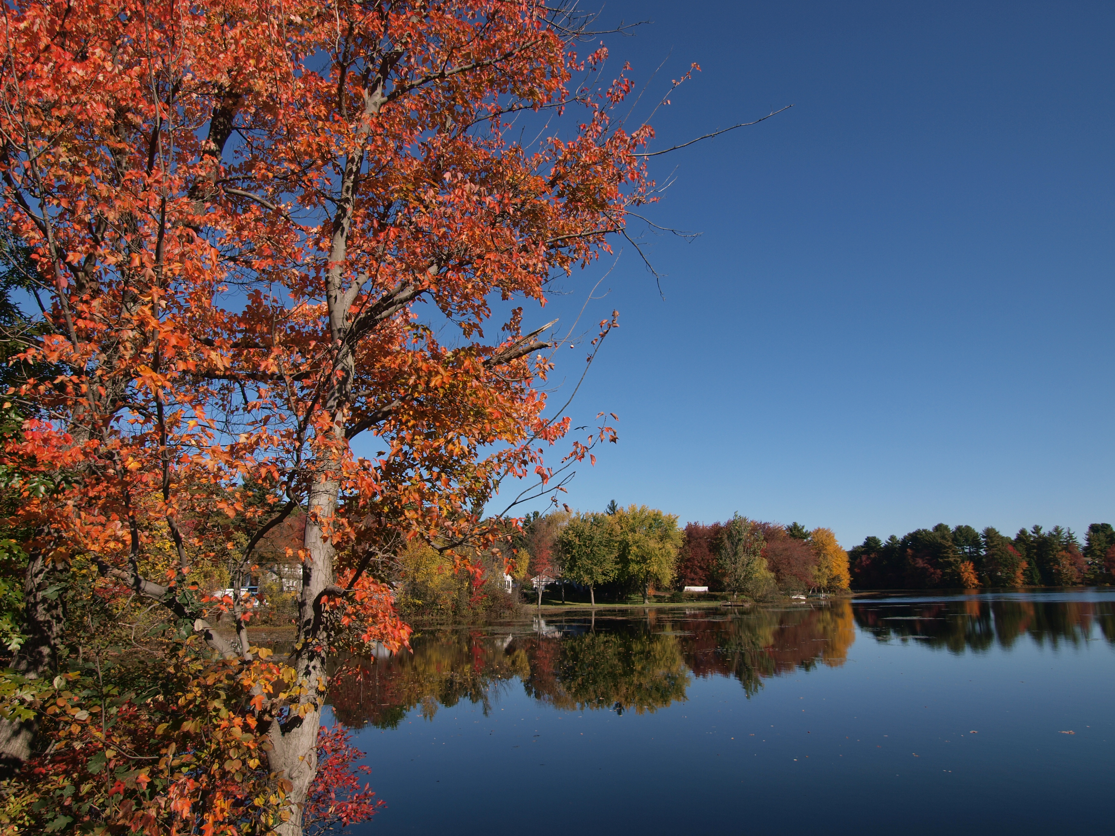 Picture #62: Spectacle pond in fall Small: 912x700, 260,315 bytes (255K), (html file) Large: 3648x2736, 10,714,988 bytes (11M), (html file) Copyright, Michael Meissner 2008, All rights reserved Olympus E-3 camera with Olympus 14-54mm f/2.8-3.5 lens f/3.5, ISO 100, 1/100 sec, 23.0mm, auto mode, natural color, auto gradation, matrix metering 35mm equivalent focal length 46.0mm Programs used: gimp Taken by Michael Meissner on October 12, 2008 17:46:02 Last modified on October 18, 2008 at 09:09 |