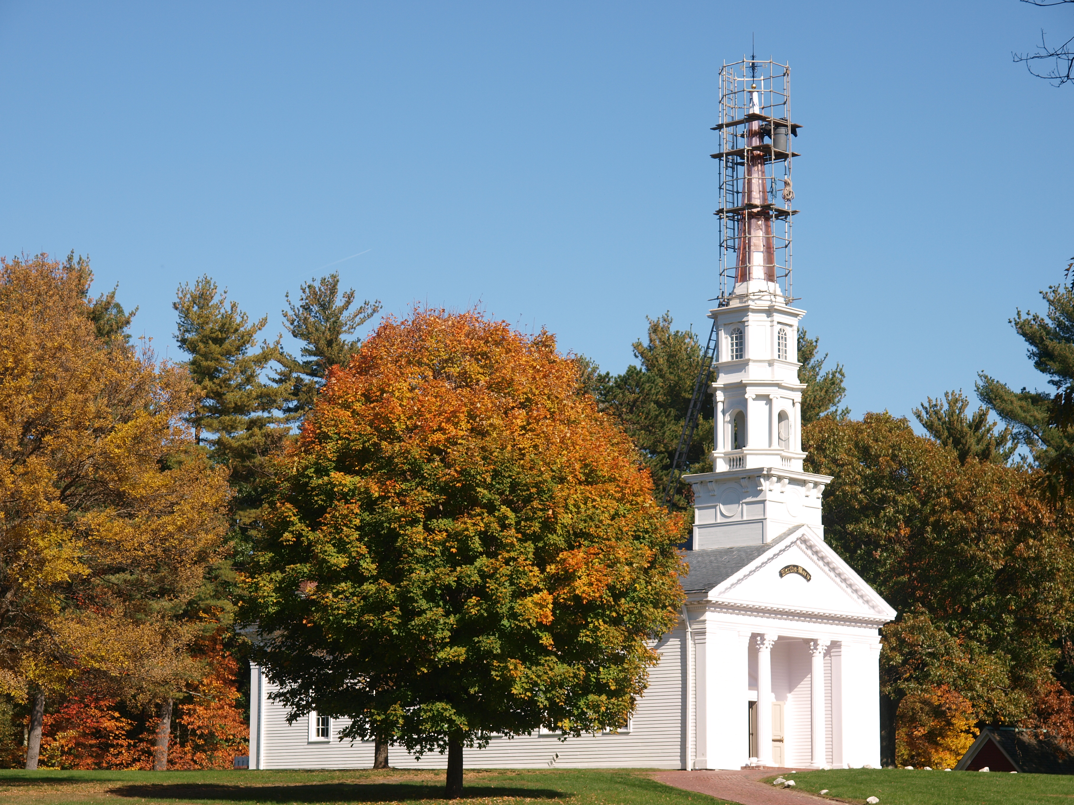 Picture #50: Andover chapel #2 Small: 912x700, 213,959 bytes (209K), (html file) Large: 3648x2736, 10,334,693 bytes (9.9M), (html file) Copyright, Michael Meissner 2008, All rights reserved Olympus E-3 camera with Olympus 14-54mm f/2.8-3.5 lens f/5.0, ISO 100, 1/200 sec, 22.0mm, auto mode, natural color, matrix metering 35mm equivalent focal length 44.0mm Programs used: gimp Taken by Michael Meissner on October 12, 2008 15:53:37 Last modified on October 18, 2008 at 00:10 This picture is one of my favorites. |