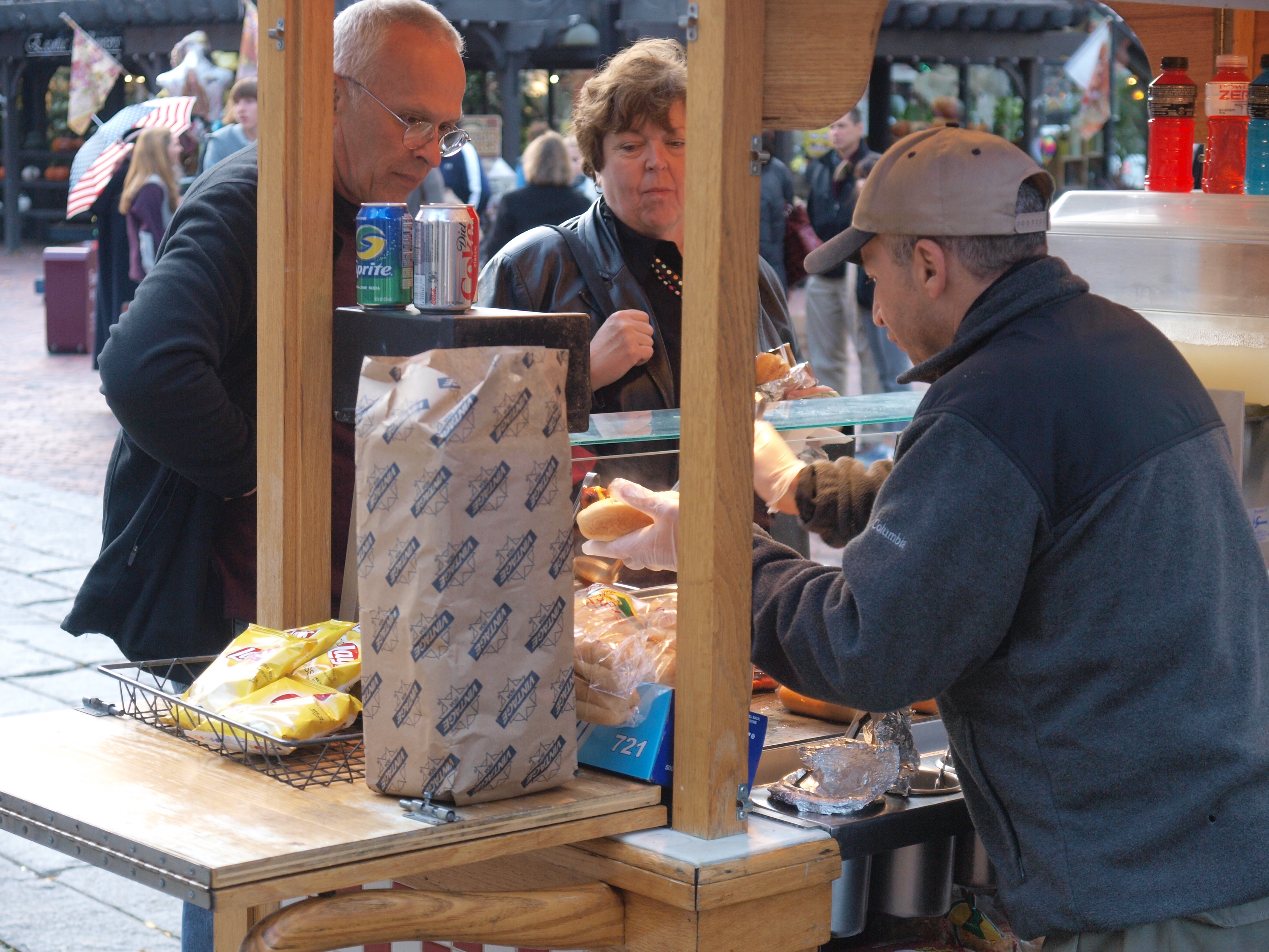 Picture #2: Boston's haymarket area #2 Thumb: 456x342, 54,342 bytes (54K) Small: 912x700, 147,317 bytes (144K), (html file) Large: 3648x2736, 5,186,762 bytes (4.9M), (html file) Copyright, Michael Meissner 2008, All rights reserved Olympus E-3 camera with Olympus 14-54mm f/2.8-3.5 lens f/4.0, ISO 100, 1/100 sec, 32.0mm, auto mode, natural color, auto gradation, matrix metering, IS1 (All Direction Shake IS) 35mm equivalent focal length 64.0mm Taken by Michael Meissner on November 01, 2008 16:09:45 Last modified on November 02, 2008 at 21:25 |