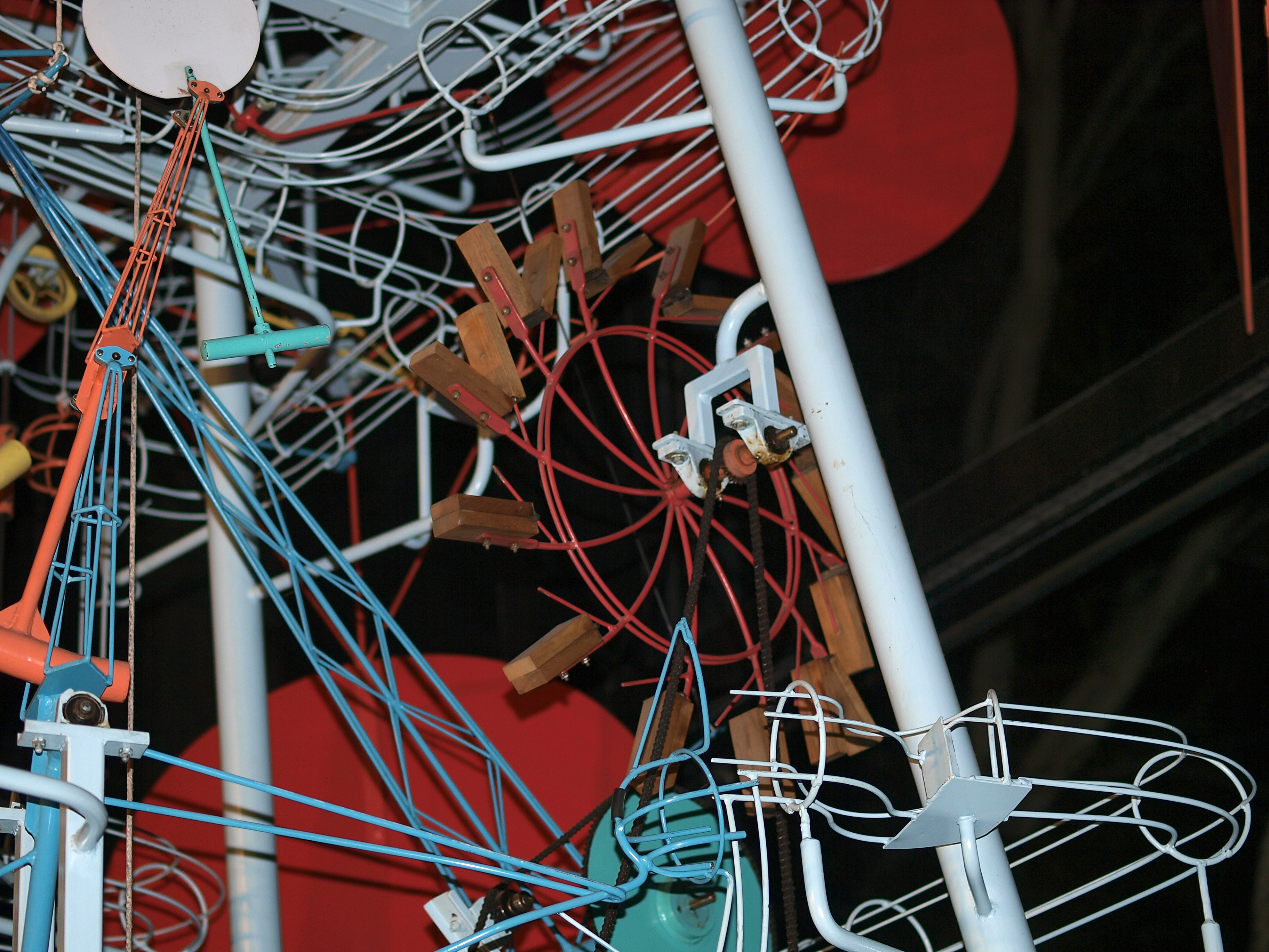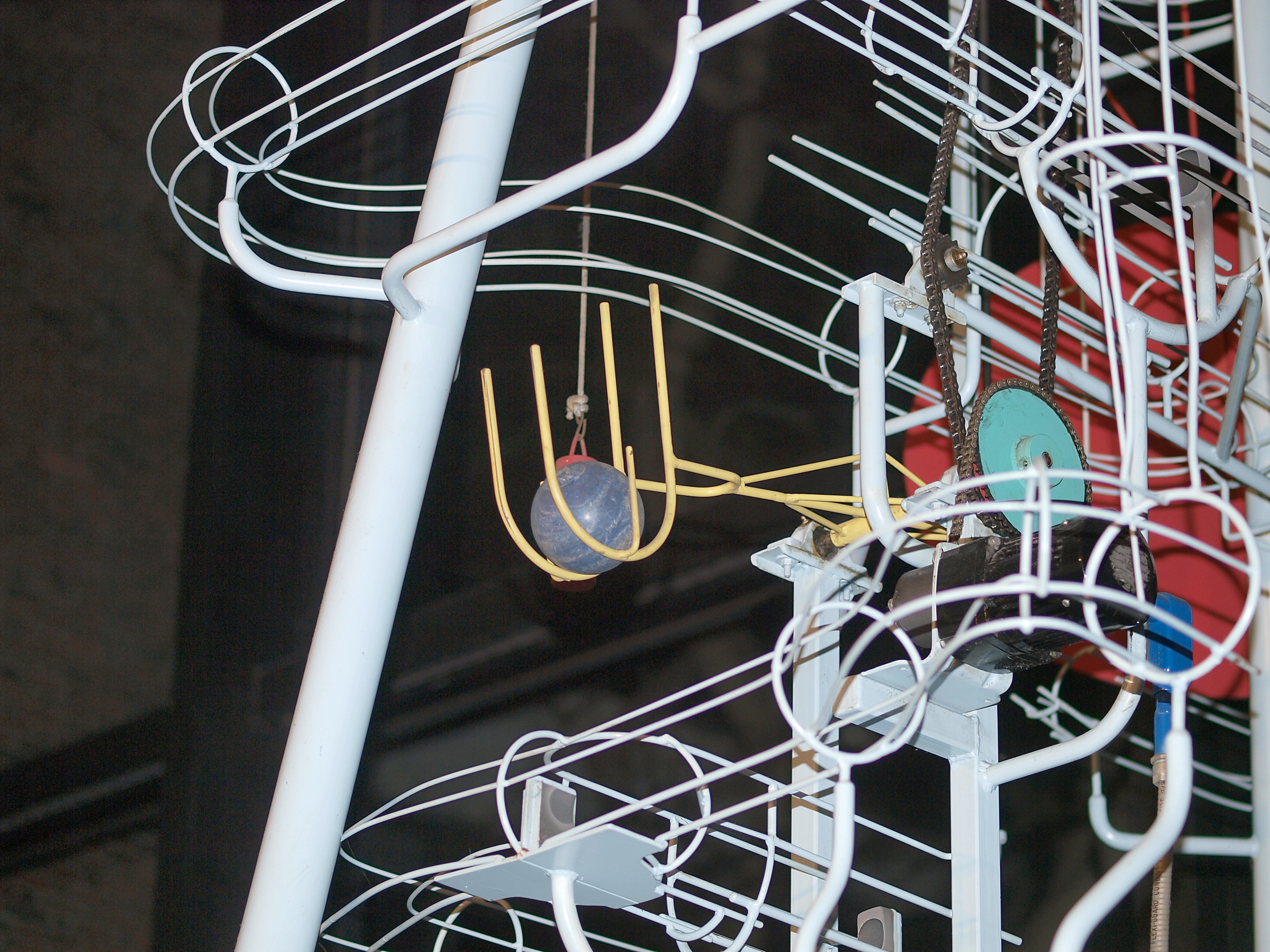 Picture #41: Kinetic sculpture #4 Thumb: 456x342, 74,000 bytes (73K) Small: 912x700, 151,832 bytes (149K), (html file) Large: 3648x2736, 8,339,610 bytes (8.0M), (html file) Copyright, Michael Meissner 2008, All rights reserved Olympus E-3 camera with Olympus 50mm f/2.0 lens f/2.0, ISO 125, flash, 1/100 sec, 50.0mm, auto mode, natural color, auto gradation, matrix metering, IS1 (All Direction Shake IS) 35mm equivalent focal length 100.0mm Extra equipment used: flash Programs used: gimp Taken by Michael Meissner on November 22, 2008 17:36:10 Last modified on December 17, 2008 at 10:11 |