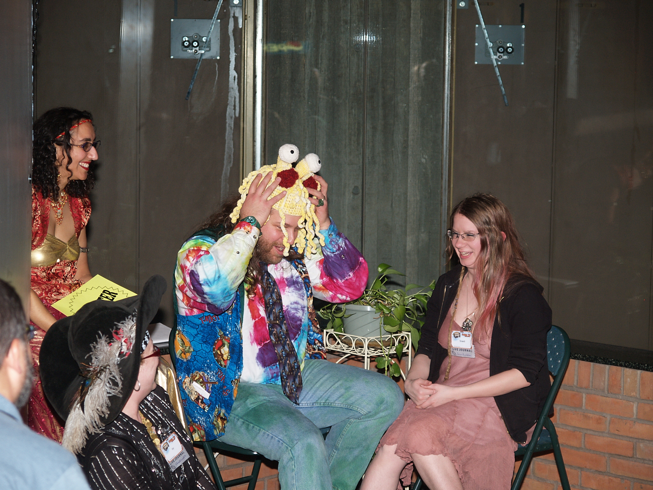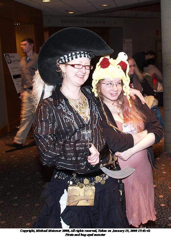 Picture #9: Pirate and bug-eyed monster Small: 600x830, 102,063 bytes (100K), (html file) Large: 1200x1600, 1,897,028 bytes (1.8M), (html file) Copyright, Michael Meissner 2008, All rights reserved Olympus E-1 camera with Olympus 14-54mm f/2.8-3.5 lens f/2.8, ISO 200, FL-50 flash, 1/30 sec, 14.0mm, auto mode, SHQ, matrix metering, +2 sharpening 35mm equivalent focal length 28.0mm Extra equipment used: FL-50 flash Programs used: gimp Taken by Michael Meissner on January 19, 2008 17:43:42 Last modified on January 19, 2008 at 17:43 |
