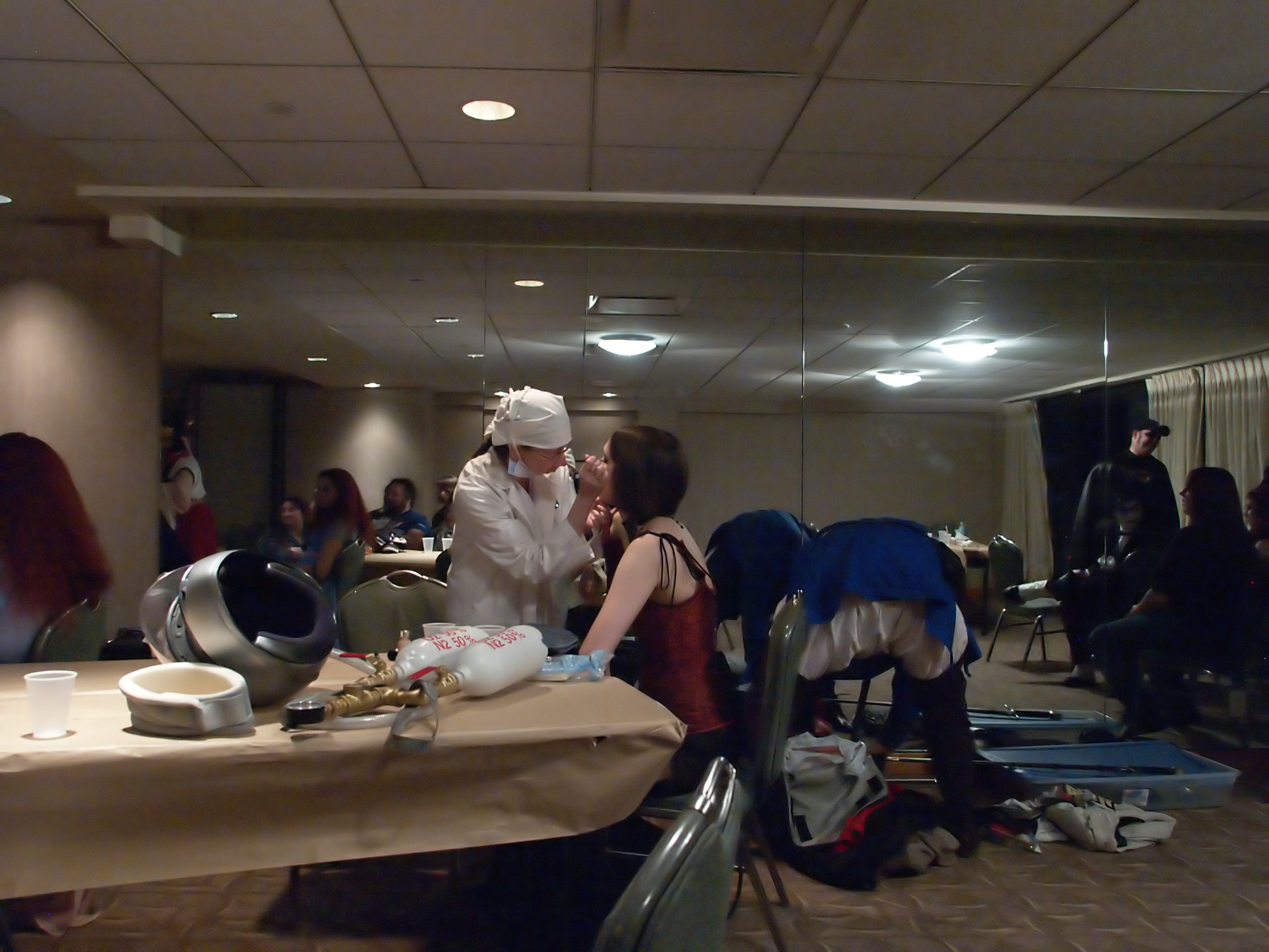 Picture #61: Props Small: 1280x976, 158,260 bytes (155K), (html file) Large: 2560x1920, 3,252,531 bytes (3.1M), (html file) Olympus E-1 camera with Olympus 14-54mm f/2.8-3.5 lens f/2.8, ISO 200, FL-50 flash, 1/30 sec, 14.0mm, auto mode, SHQ, matrix metering, +2 sharpening 35mm equivalent focal length 28.0mm Extra equipment used: FL-50 flash, Flip-it Taken by Michael Meissner on January 19, 2008 21:03:53 Last modified on February 25, 2008 at 22:32 |