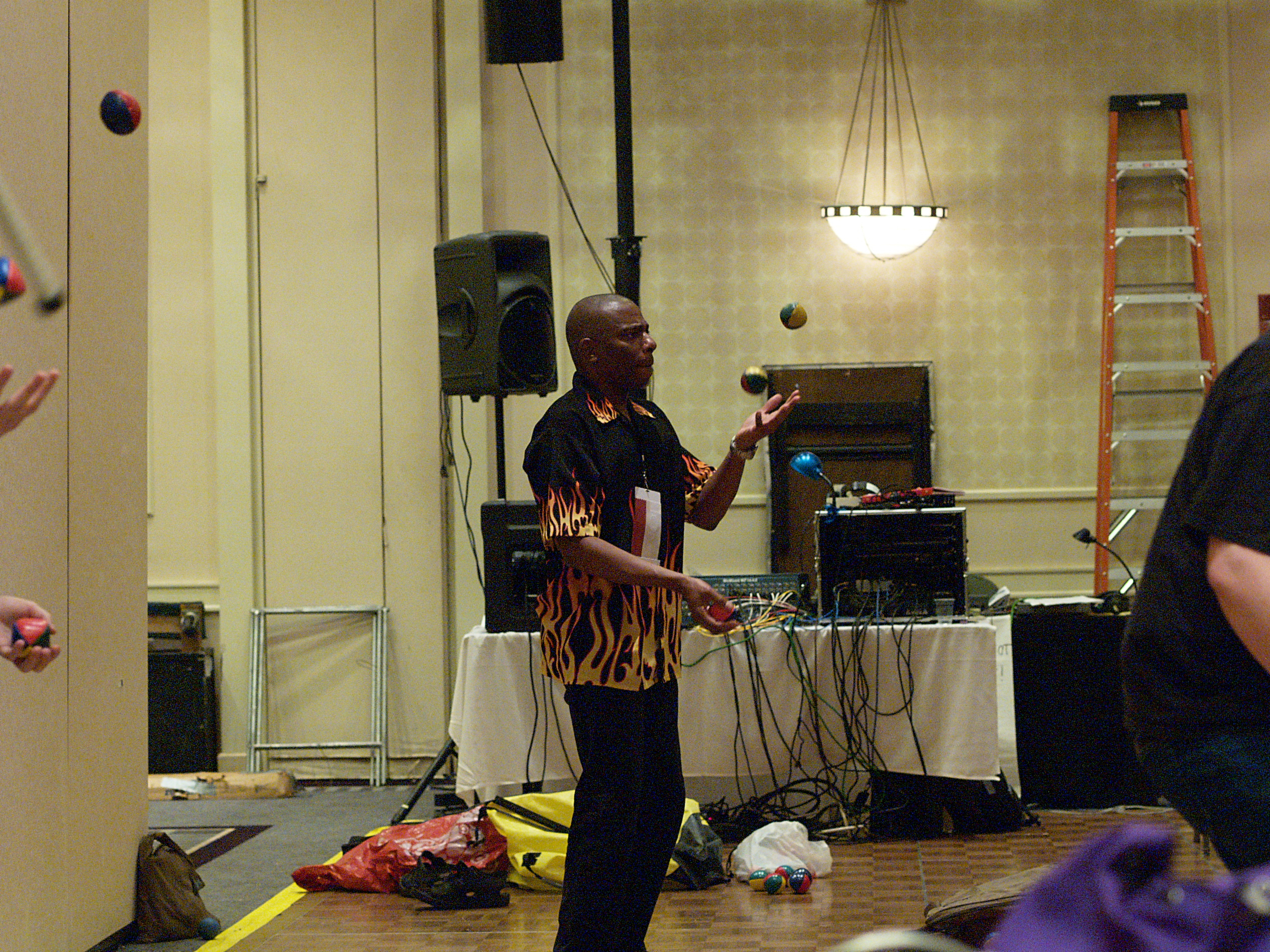 Picture #2: Jugglers #2 Small: 1280x976, 188,872 bytes (185K), (html file) Large: 2560x1920, 6,478,065 bytes (6.2M), (html file) Copyright, Michael Meissner 2008, All rights reserved Olympus E-1 camera with Olympus 50mm f/2.0 lens f/2.0, ISO 1600, 1/125 sec, 50.0mm, auto mode, SHQ, manual wb, matrix metering, +2 sharpening, continous focus 35mm equivalent focal length 100.0mm Programs used: gimp Taken by Michael Meissner on January 20, 2008 11:21:56 Last modified on January 20, 2008 at 11:21 |