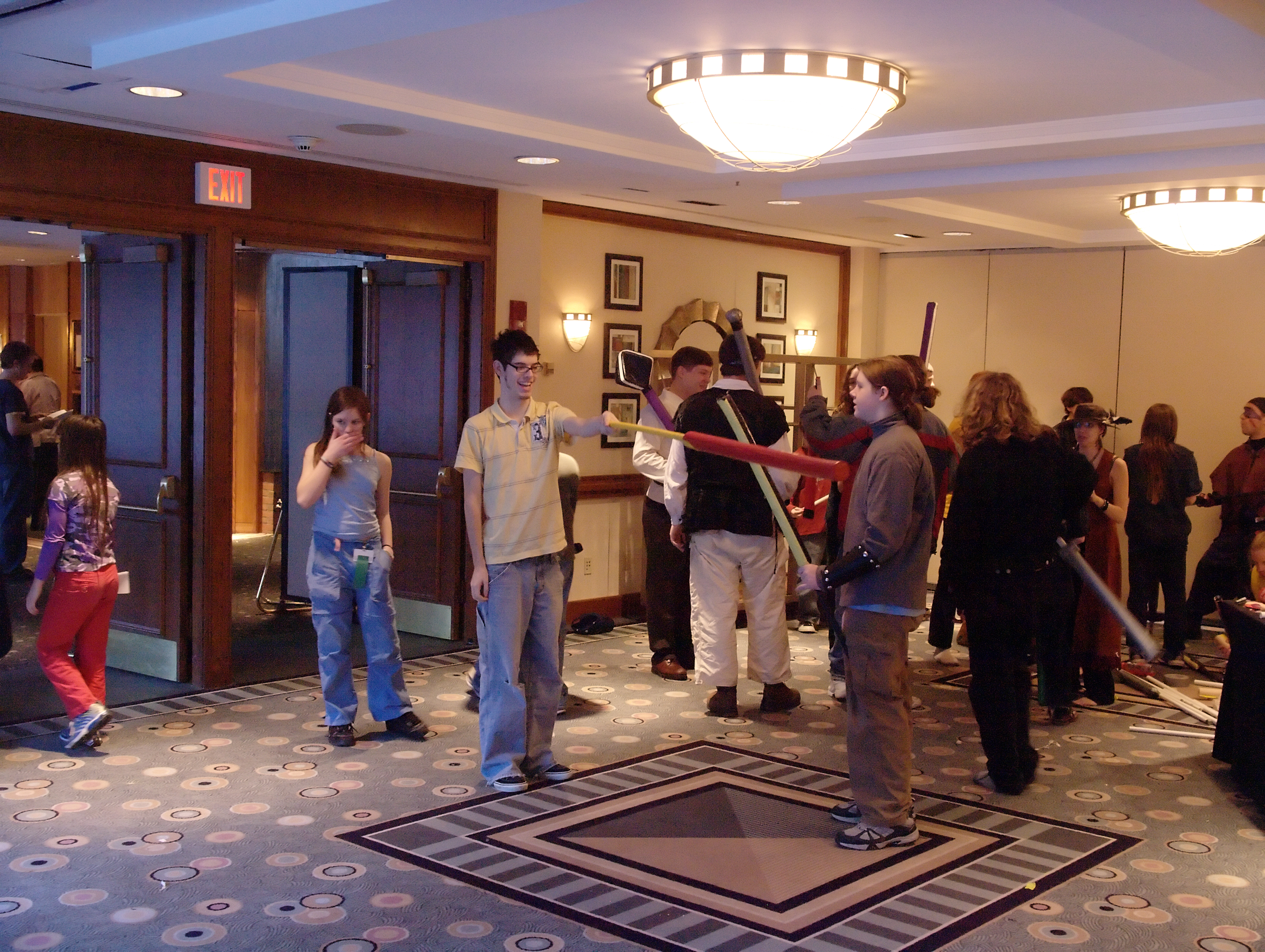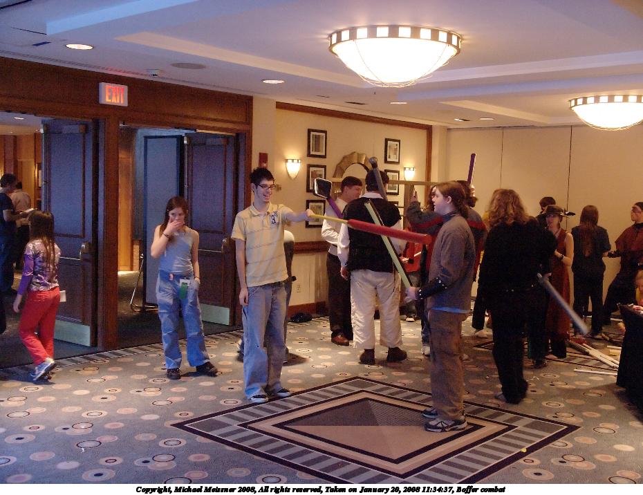 Picture #10: Boffer combat Small: 930x716, 145,161 bytes (142K), (html file) Large: 3720x2800, 10,691,758 bytes (11M), (html file) Copyright, Michael Meissner 2008, All rights reserved Olympus E-510 camera with Olympus 14-54mm f/2.8-3.5 lens f/3.2, ISO 1600, 1/50 sec, 20.0mm, auto mode, natural color, SHQ, matrix metering, -1 sharpening, image stabilization, noise filter low 35mm equivalent focal length 40.0mm Programs used: NoiseNinja, RAW, gimp Taken by Michael Meissner on January 20, 2008 11:34:37 Last modified on January 20, 2008 at 11:34 |