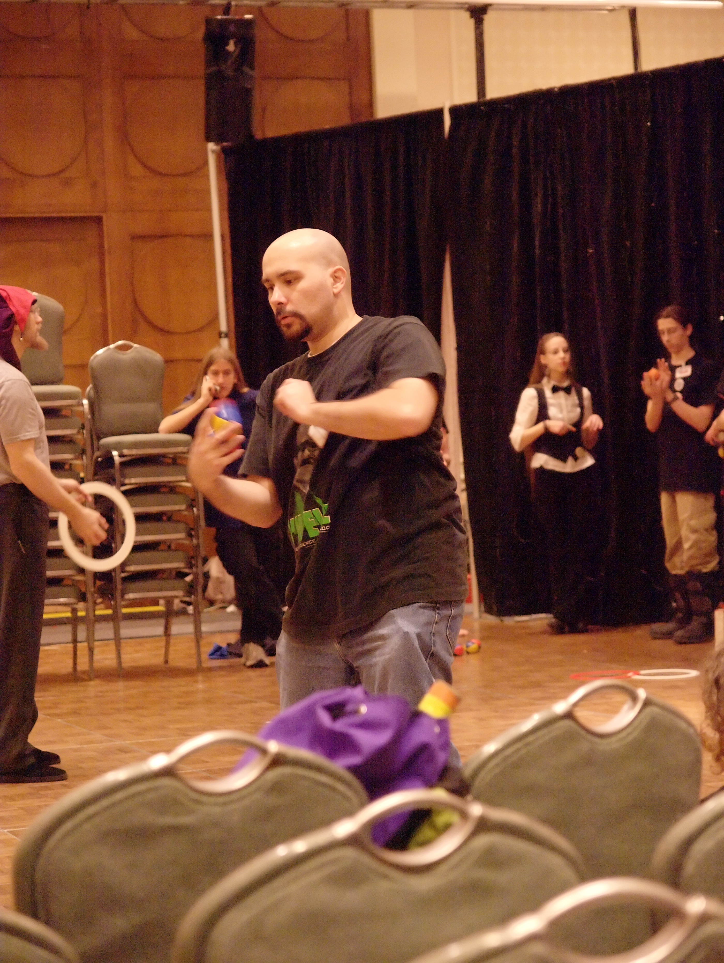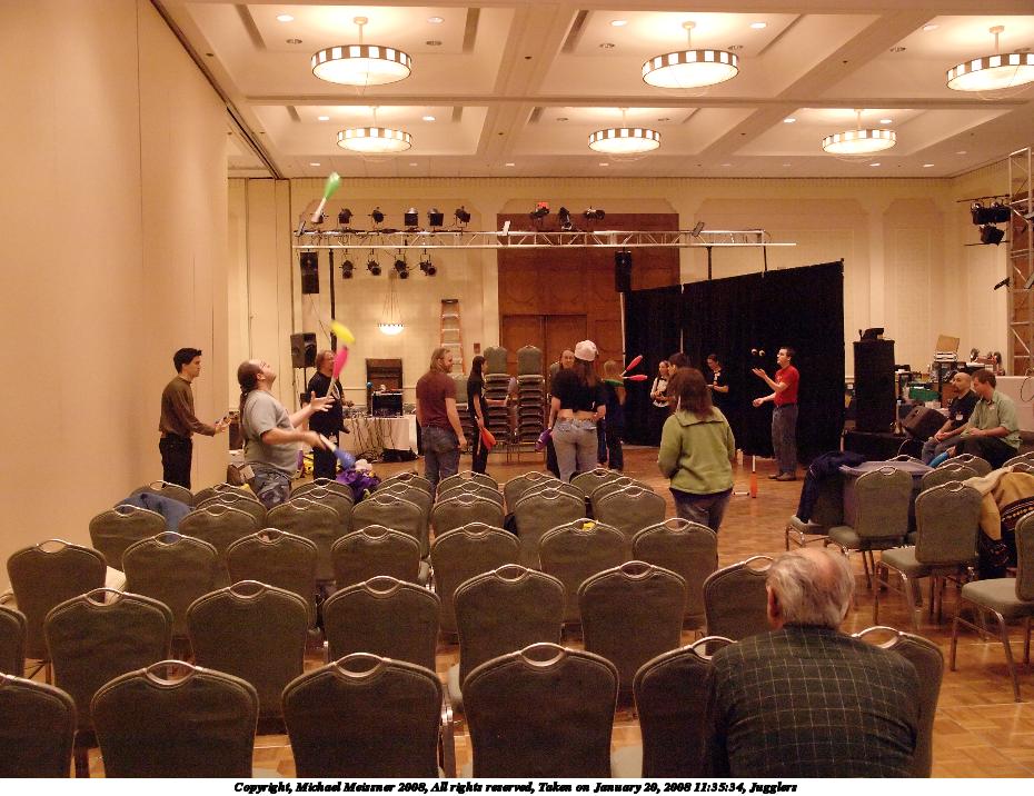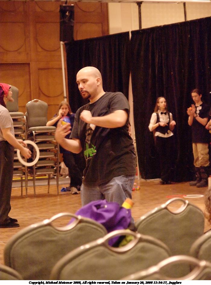 Picture #6: Jugglers #6 Small: 930x716, 144,747 bytes (142K), (html file) Large: 3720x2800, 11,300,808 bytes (11M), (html file) Copyright, Michael Meissner 2008, All rights reserved Olympus E-510 camera with Olympus 14-54mm f/2.8-3.5 lens f/4.0, ISO 1600, 1/80 sec, 17.0mm, auto mode, natural color, SHQ, day white fluorescent (4500K), matrix metering, -1 sharpening, image stabilization, noise filter low 35mm equivalent focal length 34.0mm Programs used: NoiseNinja, RAW, gimp Taken by Michael Meissner on January 20, 2008 11:35:34 Last modified on January 20, 2008 at 11:35 |