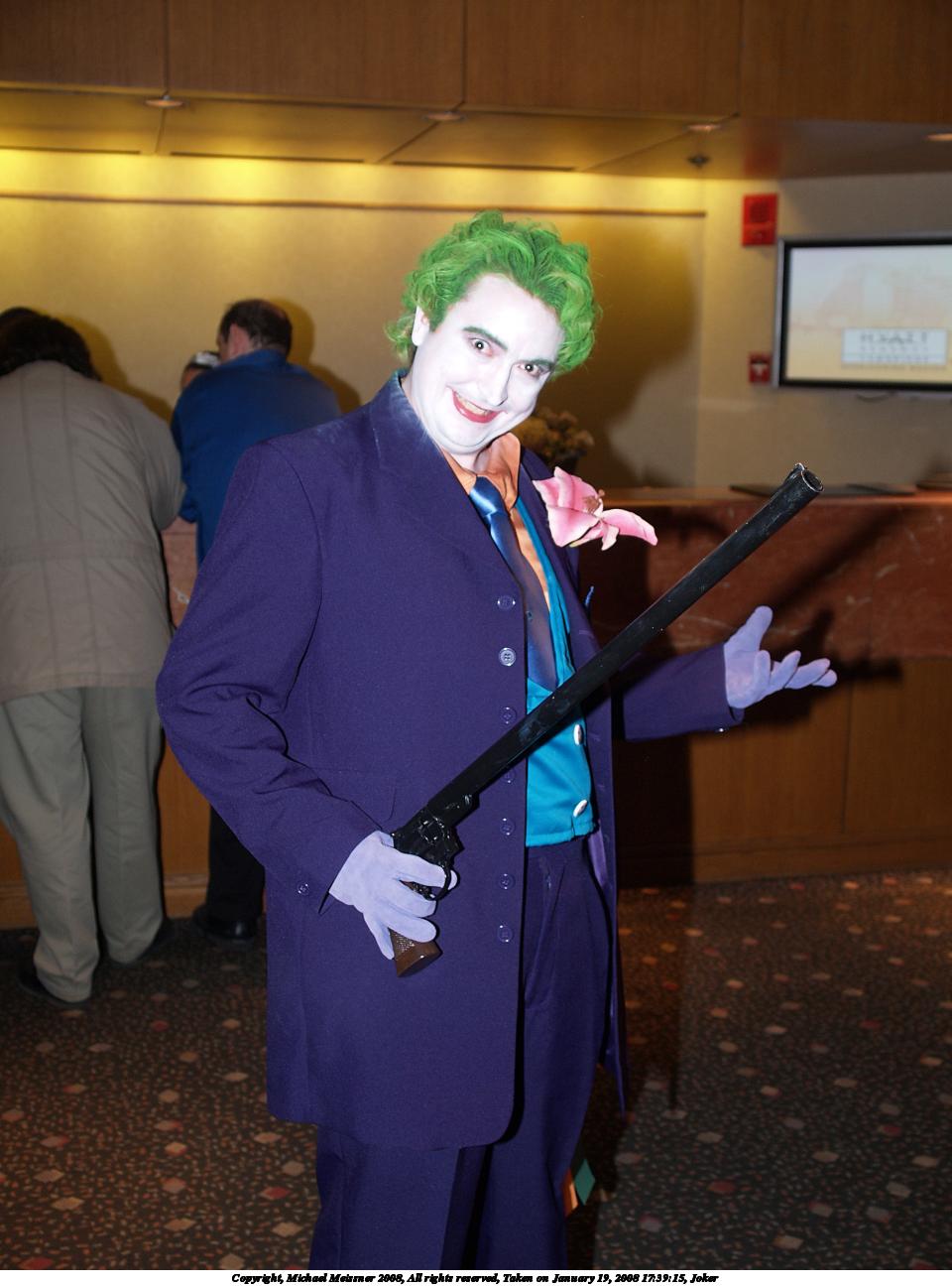 Picture #5: Joker Small: 960x1296, 121,138 bytes (119K), (html file) Large: 1920x2560, 4,268,271 bytes (4.1M), (html file) Copyright, Michael Meissner 2008, All rights reserved Olympus E-1 camera with Olympus 14-54mm f/2.8-3.5 lens f/3.0, ISO 200, FL-50 flash, 1/40 sec, 22.0mm, auto mode, SHQ, matrix metering, +2 sharpening 35mm equivalent focal length 44.0mm Extra equipment used: FL-50 flash Programs used: gimp, rotate Taken by Michael Meissner on January 19, 2008 17:39:15 Last modified on January 19, 2008 at 17:39 |