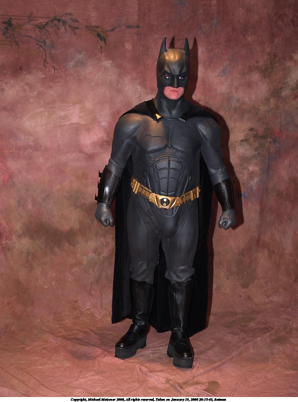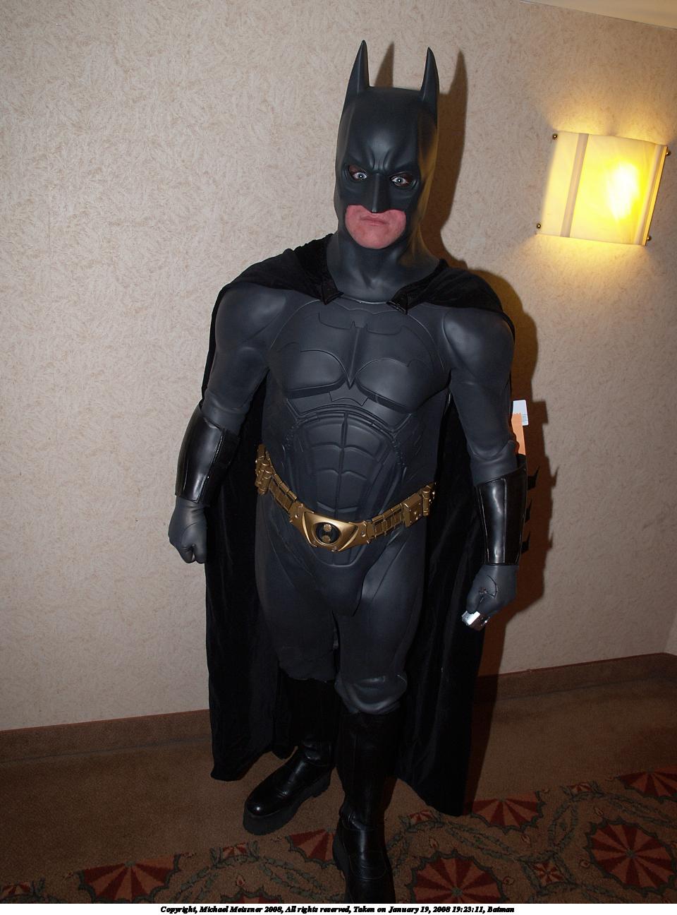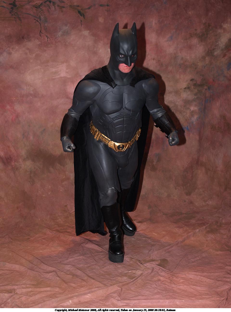 Picture #50: Batman #3 Small: 960x1296, 143,012 bytes (140K), (html file) Large: 1920x2560, 4,690,490 bytes (4.5M), (html file) Copyright, Michael Meissner 2008, All rights reserved Olympus E-1 camera with Olympus 14-54mm f/2.8-3.5 lens f/5.6, ISO 200, FL-50 flash, 1/60 sec, 31.0mm, aperture priority, SHQ, matrix metering, +2 sharpening 35mm equivalent focal length 62.0mm Extra equipment used: FL-50 flash, Flip-it Programs used: gimp, rotate Taken by Michael Meissner on January 19, 2008 20:18:01 Last modified on February 25, 2008 at 21:54 |