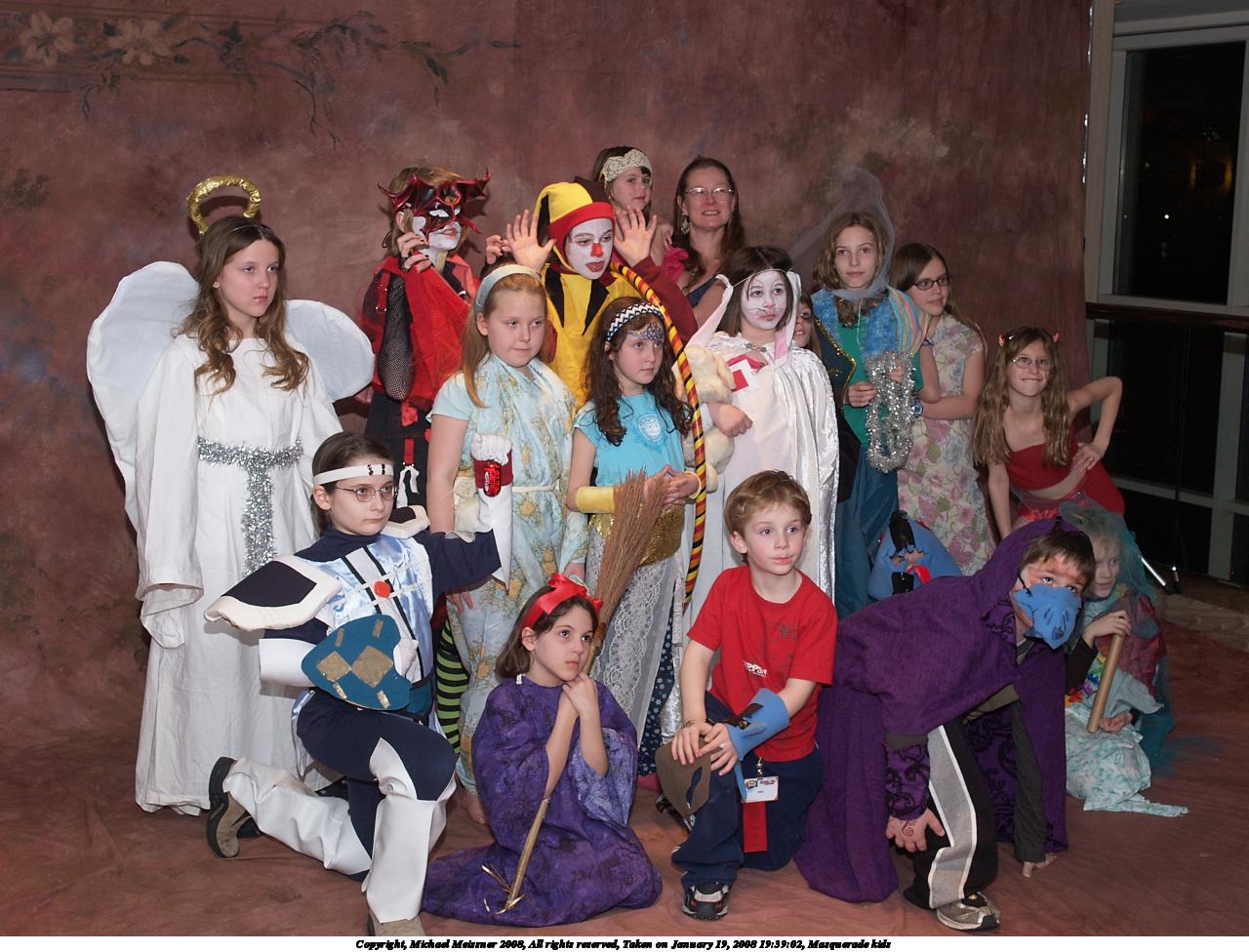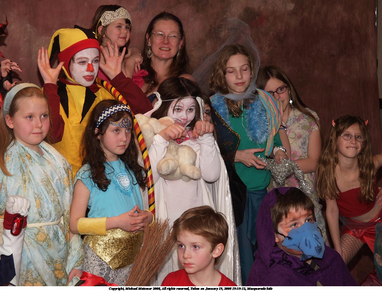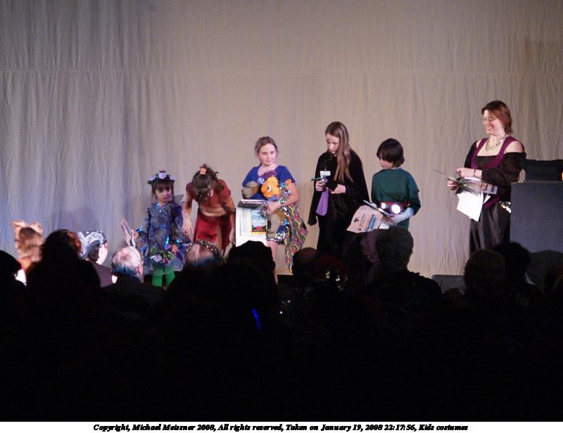 Picture #13: Masquerade kids #2 Small: 1280x976, 213,741 bytes (209K), (html file) Large: 2560x1920, 4,391,839 bytes (4.2M), (html file) Copyright, Michael Meissner 2008, All rights reserved Olympus E-1 camera with Olympus 14-54mm f/2.8-3.5 lens f/5.6, ISO 200, FL-50 flash, 1/100 sec, 54.0mm, aperture priority, SHQ, matrix metering, +2 sharpening 35mm equivalent focal length 108.0mm Extra equipment used: FL-50 flash Programs used: gimp Taken by Michael Meissner on January 19, 2008 19:39:12 Last modified on February 15, 2008 at 22:19 |