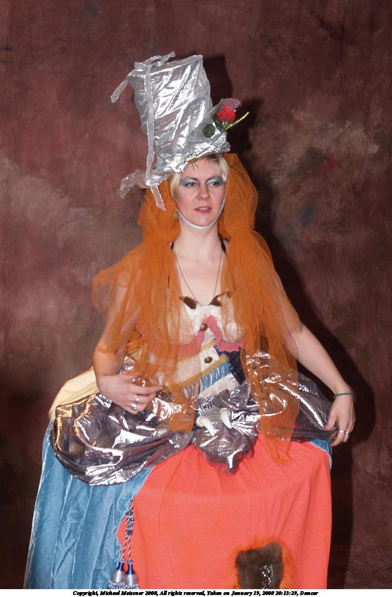 Picture #43: Dancer #2 Small: 960x1296, 186,566 bytes (183K), (html file) Large: 1920x2560, 4,403,784 bytes (4.2M), (html file) Copyright, Michael Meissner 2008, All rights reserved Olympus E-1 camera with Olympus 14-54mm f/2.8-3.5 lens f/5.6, ISO 200, FL-50 flash, 1/50 sec, 27.0mm, aperture priority, SHQ, matrix metering, +2 sharpening 35mm equivalent focal length 54.0mm Extra equipment used: FL-50 flash, Flip-it Programs used: gimp, rotate Taken by Michael Meissner on January 19, 2008 20:14:38 Last modified on February 25, 2008 at 21:45 |