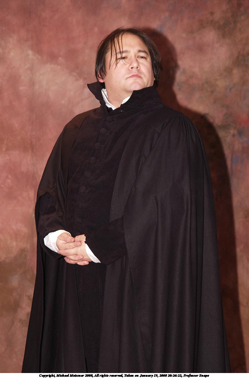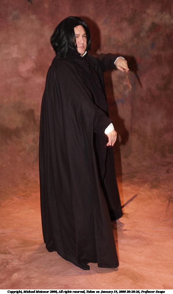 Picture #57: Professor Snape #3 Small: 600x1016, 70,027 bytes (69K), (html file) Large: 1200x2000, 2,195,935 bytes (2.1M), (html file) Copyright, Michael Meissner 2008, All rights reserved Olympus E-1 camera with Olympus 14-54mm f/2.8-3.5 lens f/3.0, ISO 200, FL-50 flash, 1/50 sec, 22.0mm, auto mode, SHQ, matrix metering, +2 sharpening 35mm equivalent focal length 44.0mm Extra equipment used: FL-50 flash, Flip-it Programs used: gimp, rotate Taken by Michael Meissner on January 19, 2008 20:28:26 Last modified on February 25, 2008 at 22:07 |