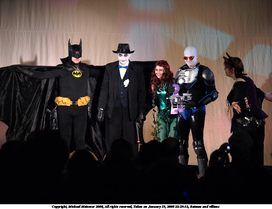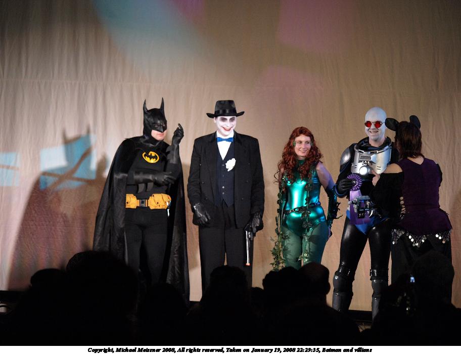 Picture #24: Batman and villians #3 Small: 1280x976, 170,187 bytes (167K), (html file) Large: 2560x1920, 4,980,024 bytes (4.7M), (html file) Copyright, Michael Meissner 2008, All rights reserved Olympus E-1 camera with Olympus 14-54mm f/2.8-3.5 lens f/5.6, ISO 200, FL-50 flash, 1/40 sec, 22.0mm, aperture priority, SHQ, matrix metering, +2 sharpening 35mm equivalent focal length 44.0mm Extra equipment used: FL-50 flash Programs used: gimp Taken by Michael Meissner on January 19, 2008 19:52:39 Last modified on February 16, 2008 at 08:03 |