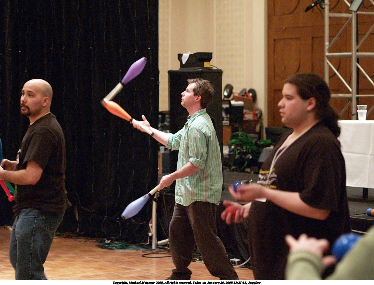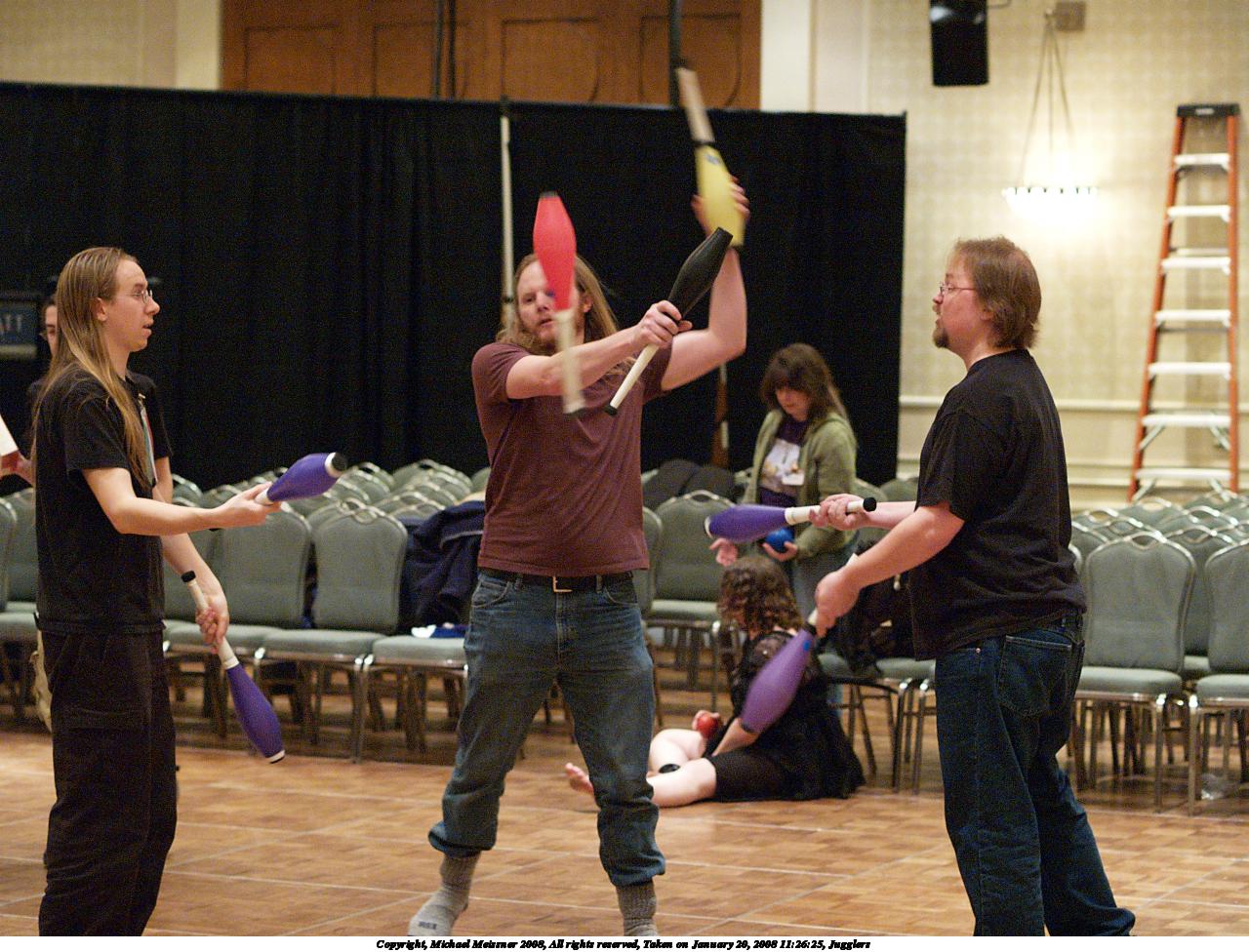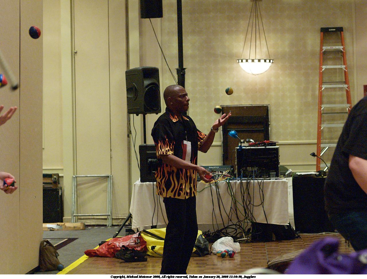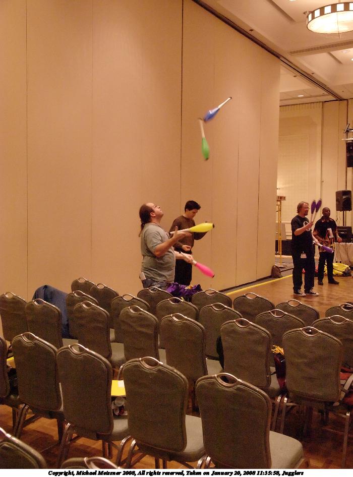 Picture #3: Jugglers #3 Small: 1280x976, 229,660 bytes (225K), (html file) Large: 2560x1920, 6,330,701 bytes (6.0M), (html file) Copyright, Michael Meissner 2008, All rights reserved Olympus E-1 camera with Olympus 50mm f/2.0 lens f/2.2, ISO 1600, 1/125 sec, 50.0mm, auto mode, SHQ, manual wb, matrix metering, +2 sharpening, continous focus 35mm equivalent focal length 100.0mm Programs used: gimp Taken by Michael Meissner on January 20, 2008 11:25:51 Last modified on February 26, 2008 at 09:04 |