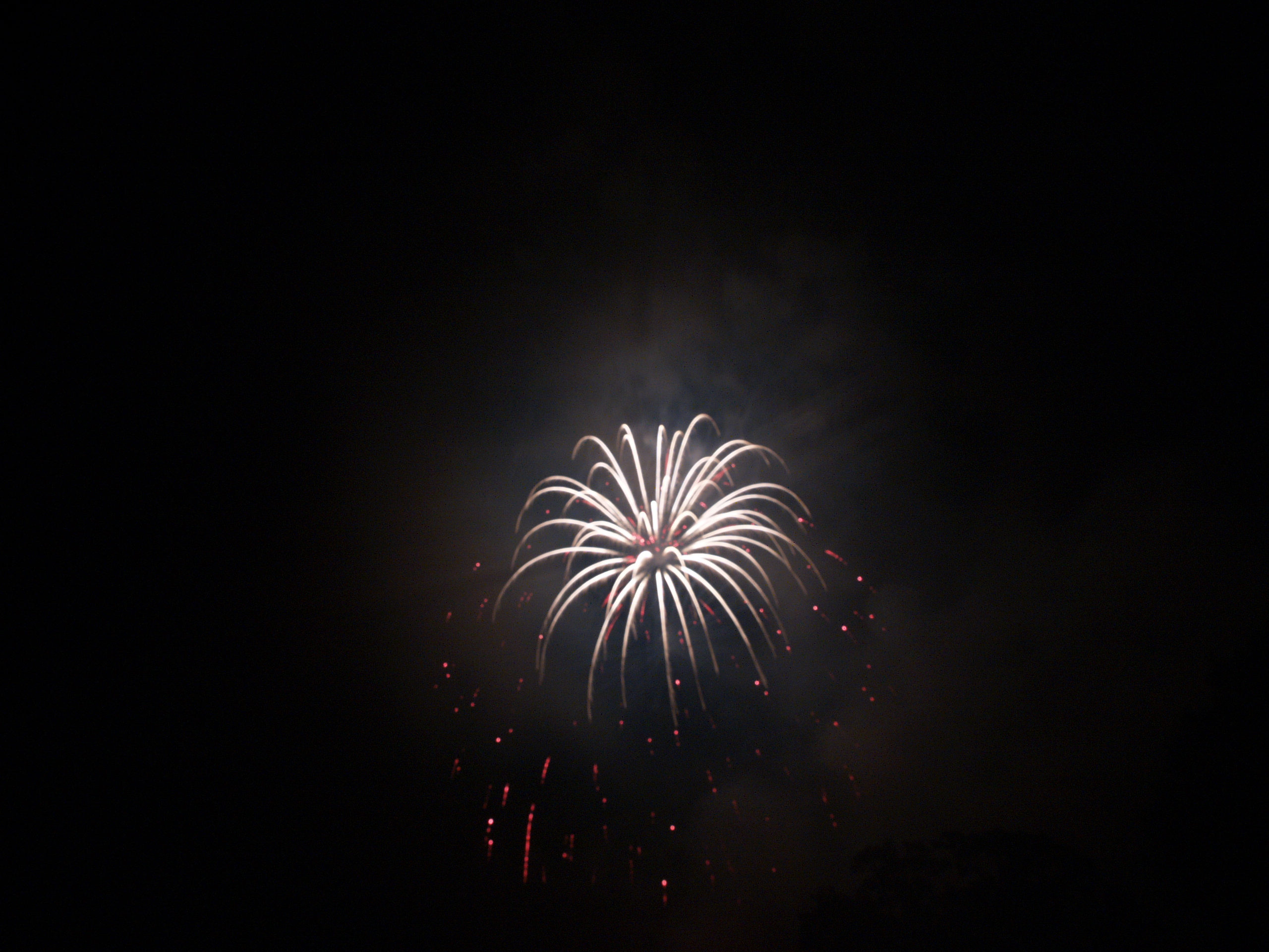 Picture #1: Fireworks Small: 1280x976, 50,079 bytes (49K), (html file) Large: 2560x1920, 3,565,070 bytes (3.4M), (html file) Copyright, Michael Meissner 2008, All rights reserved Olympus E-1 camera with Olympus 14-54mm f/2.8-3.5 lens f/8.0, ISO 400, 1.5 sec, 14.0mm, manual mode, SHQ, matrix metering, +2 sharpening, manual focus, noise reduction 35mm equivalent focal length 28.0mm Extra equipment used: tripod, wired shutter release Taken by Michael Meissner on July 05, 2008 21:41:16 Last modified on July 09, 2008 at 12:47 |