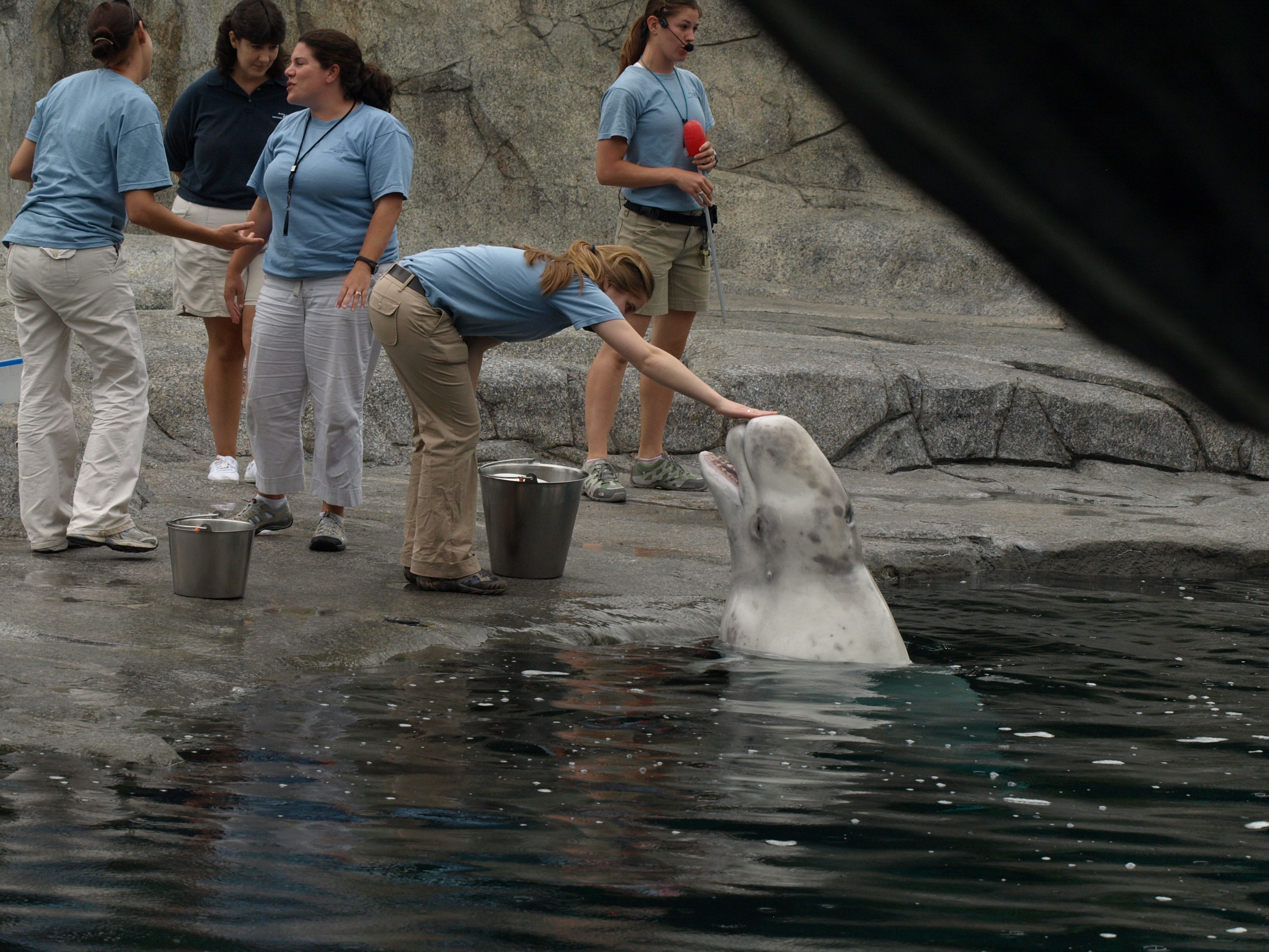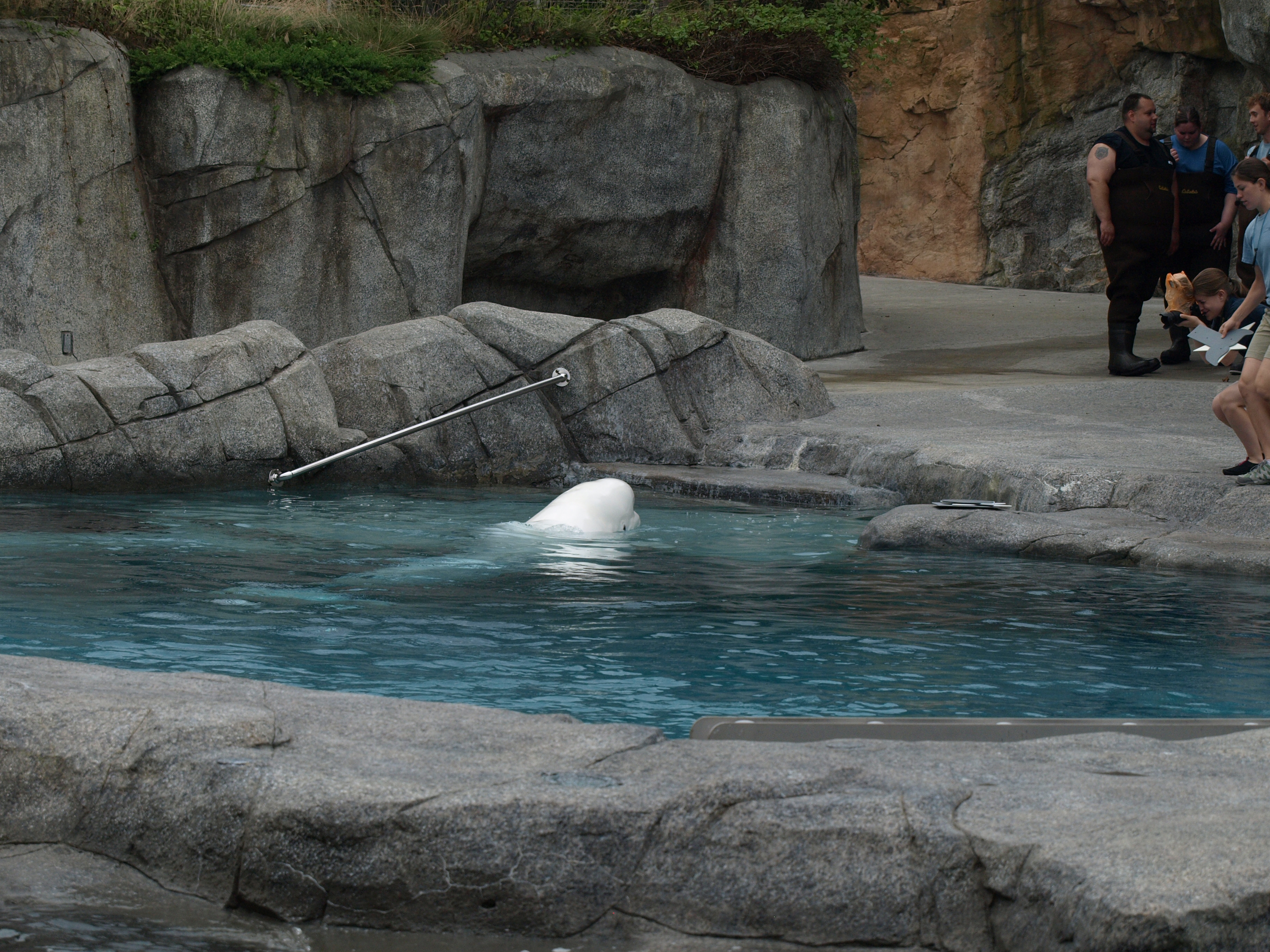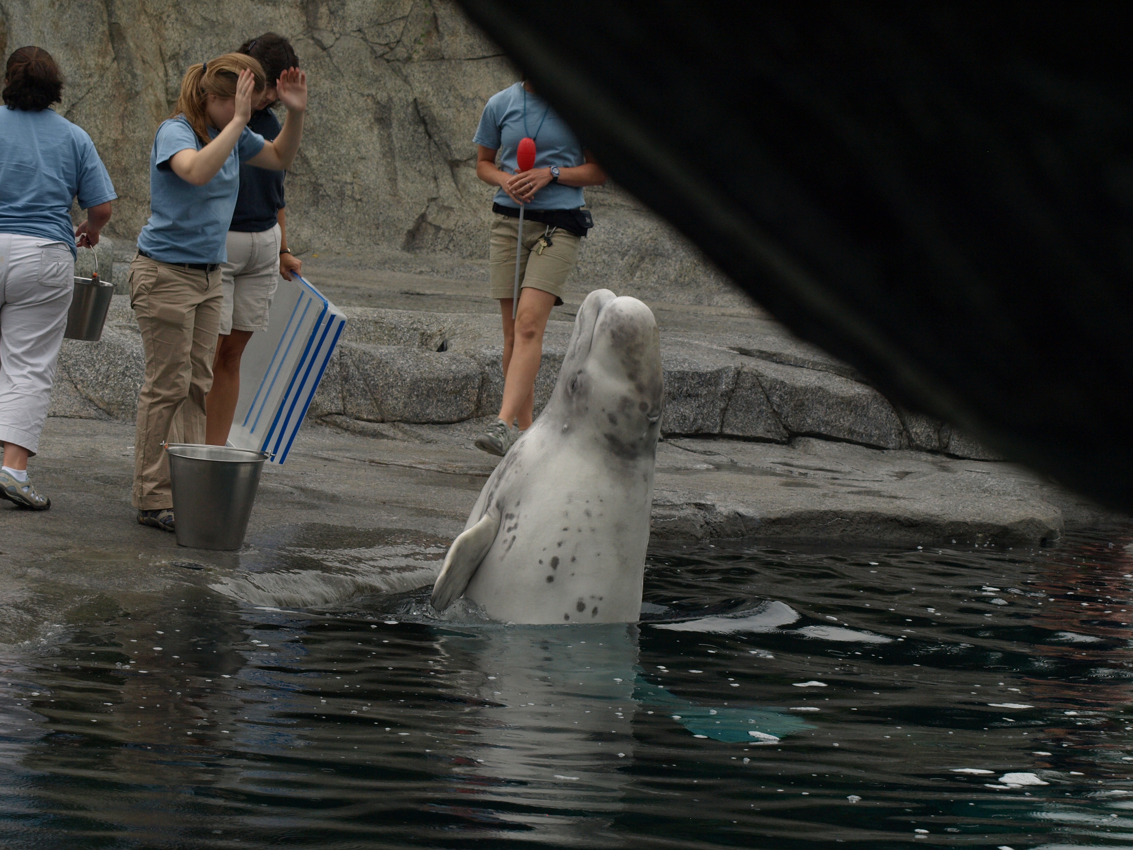 Picture #54: Beluga whale #3 Small: 912x700, 131,695 bytes (129K), (html file) Large: 3648x2736, 6,360,562 bytes (6.1M), (html file) Copyright, Michael Meissner 2008, All rights reserved Olympus E-510 camera with Olympus 50-200mm f/2.8-3.5 lens and Olympus EC-14 (1.4x) f/5.6, ISO 400, 1/400 sec, 80.0mm, auto mode, natural color, SHQ, matrix metering, -1 sharpening, auto + manual focus, IS1 (All Direction Shake IS), noise filter low 35mm equivalent focal length 160.0mm, EC-14 Taken by Michael Meissner on August 02, 2008 13:15:18 Last modified on September 21, 2008 at 16:59 |