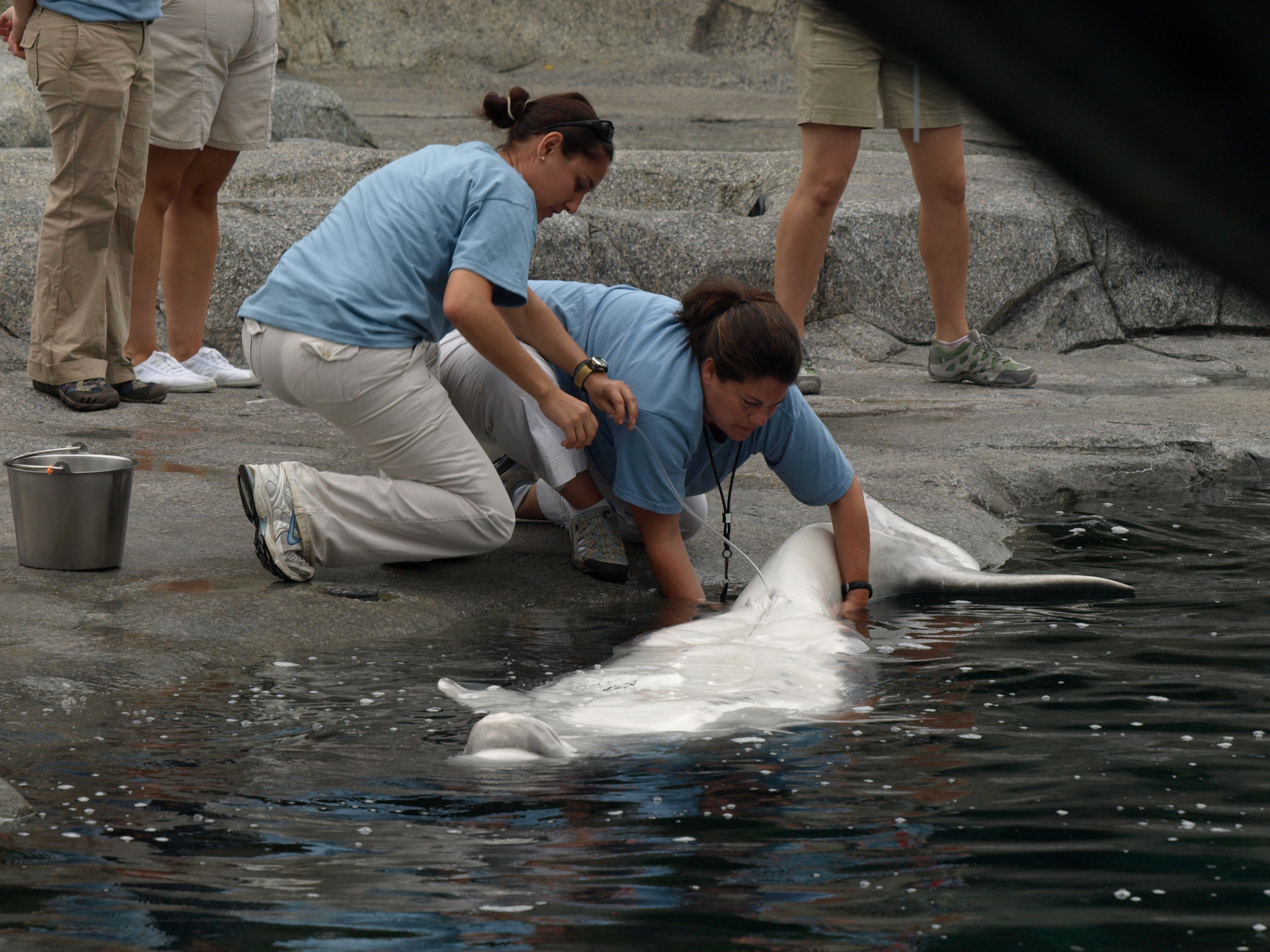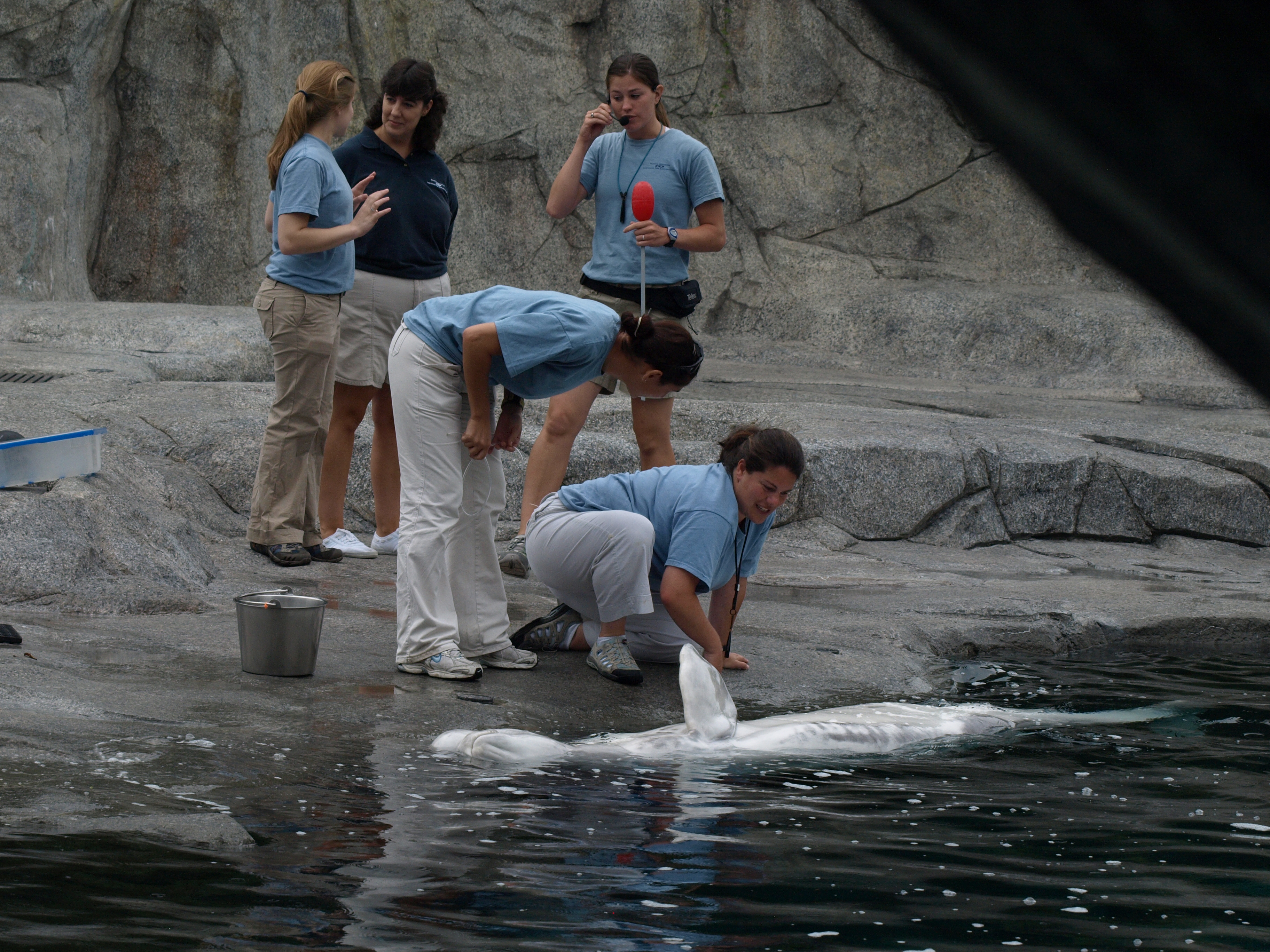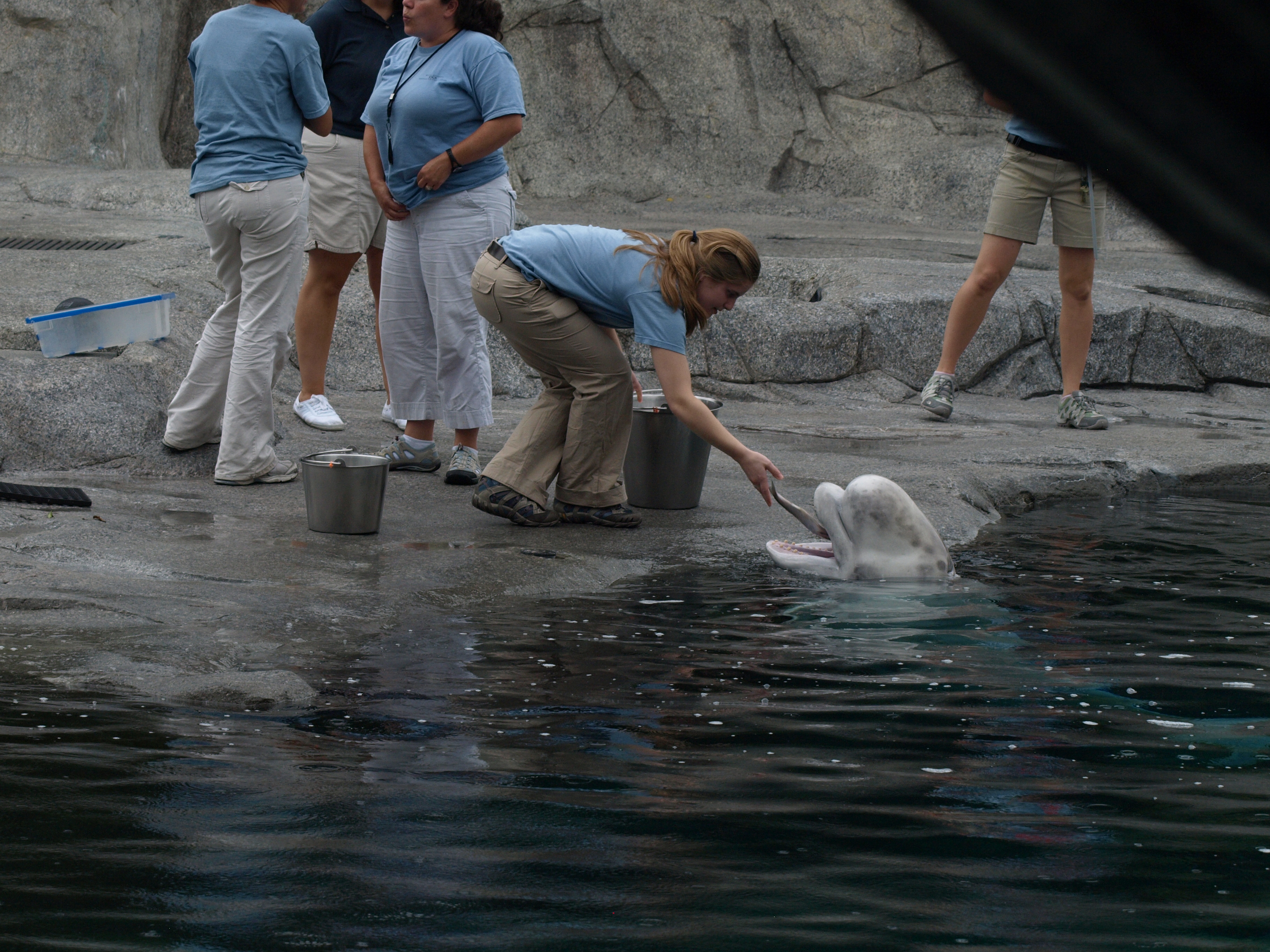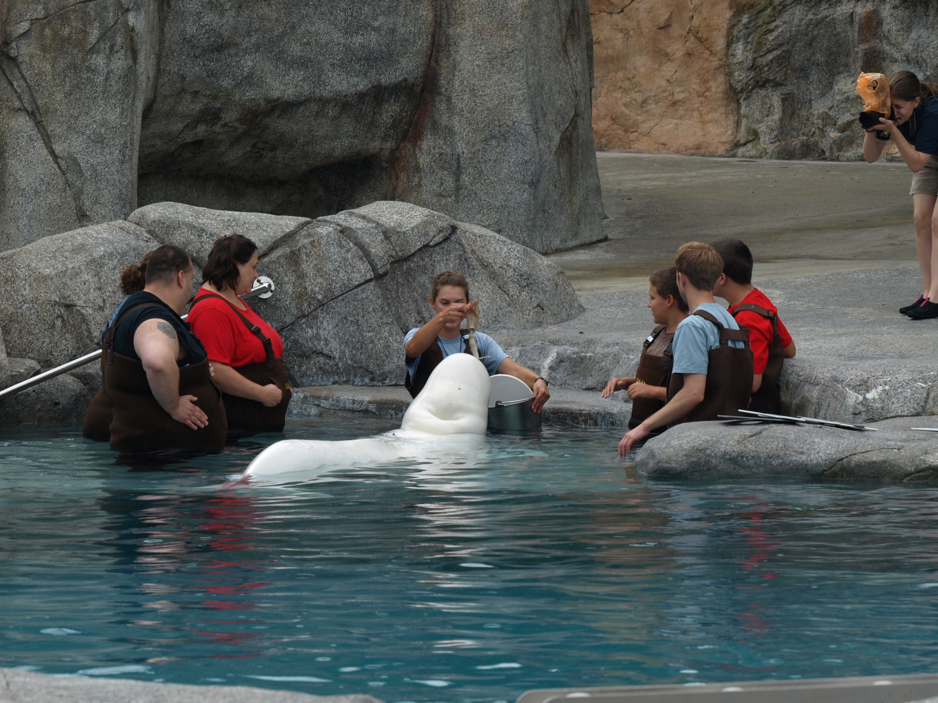Picture #54: Beluga whale #3 Small: 912x700, 131,695 bytes (129K), (html file) Large: 3648x2736, 6,360,562 bytes (6.1M), (html file) Copyright, Michael Meissner 2008, All rights reserved Olympus E-510 camera with Olympus 50-200mm f/2.8-3.5 lens and Olympus EC-14 (1.4x) f/5.6, ISO 400, 1/400 sec, 80.0mm, auto mode, natural color, SHQ, matrix metering, -1 sharpening, auto + manual focus, IS1 (All Direction Shake IS), noise filter low 35mm equivalent focal length 160.0mm, EC-14 Taken by Michael Meissner on August 02, 2008 13:15:18 Last modified on September 21, 2008 at 16:59 |