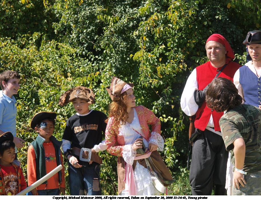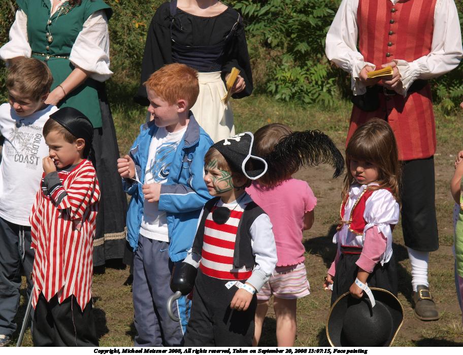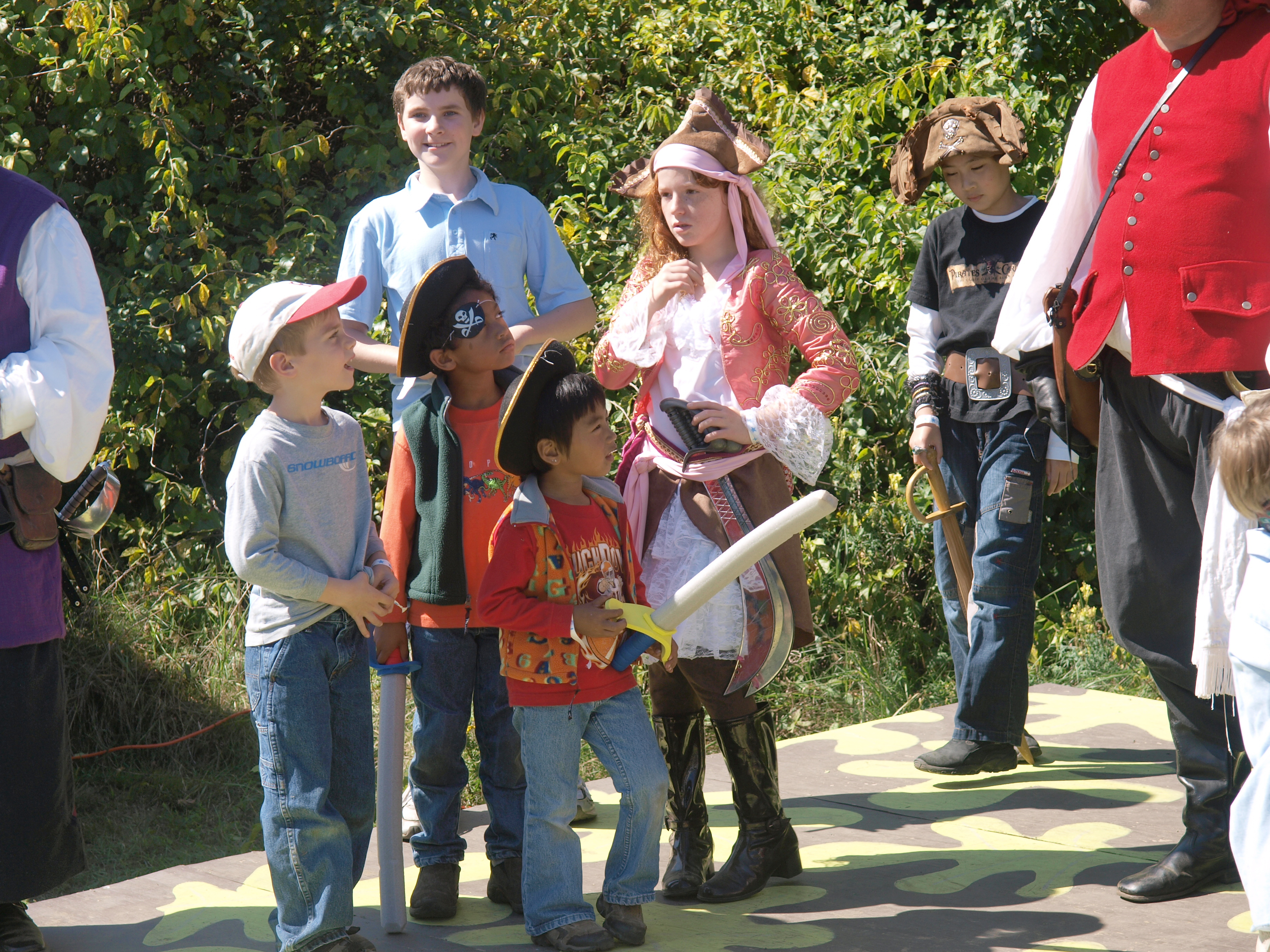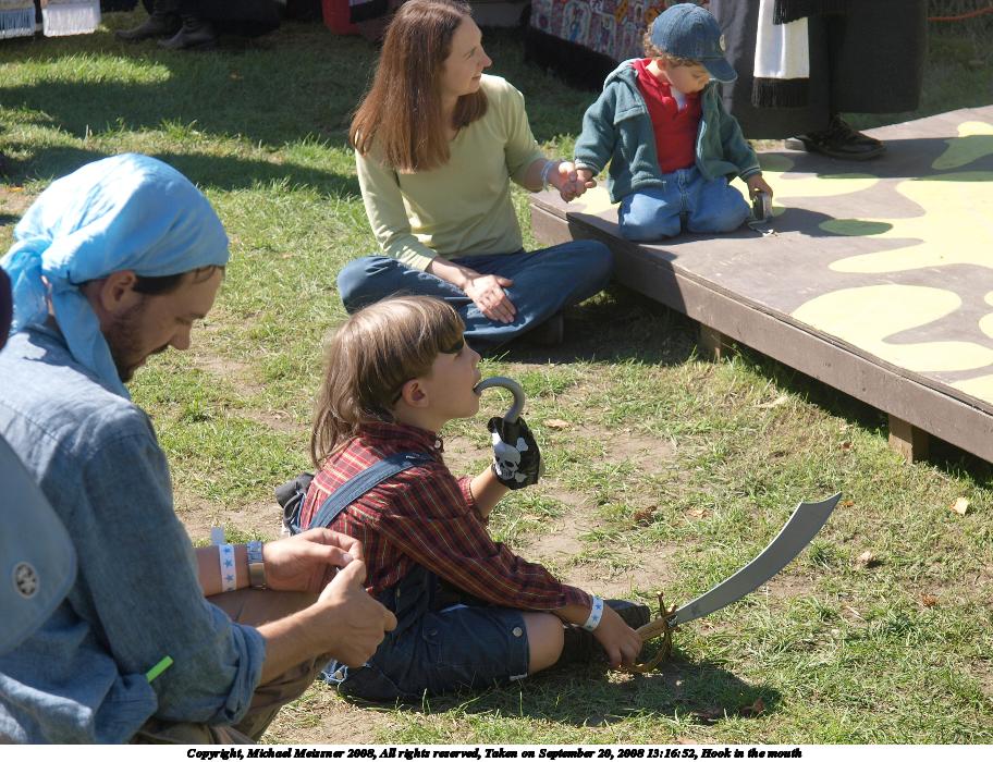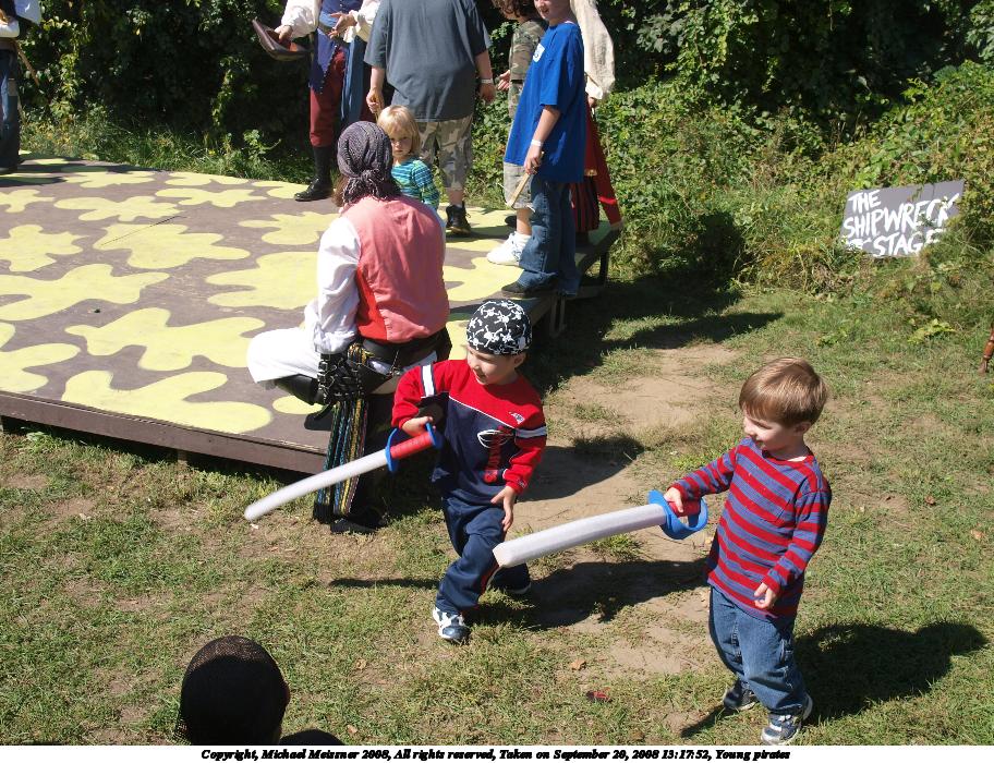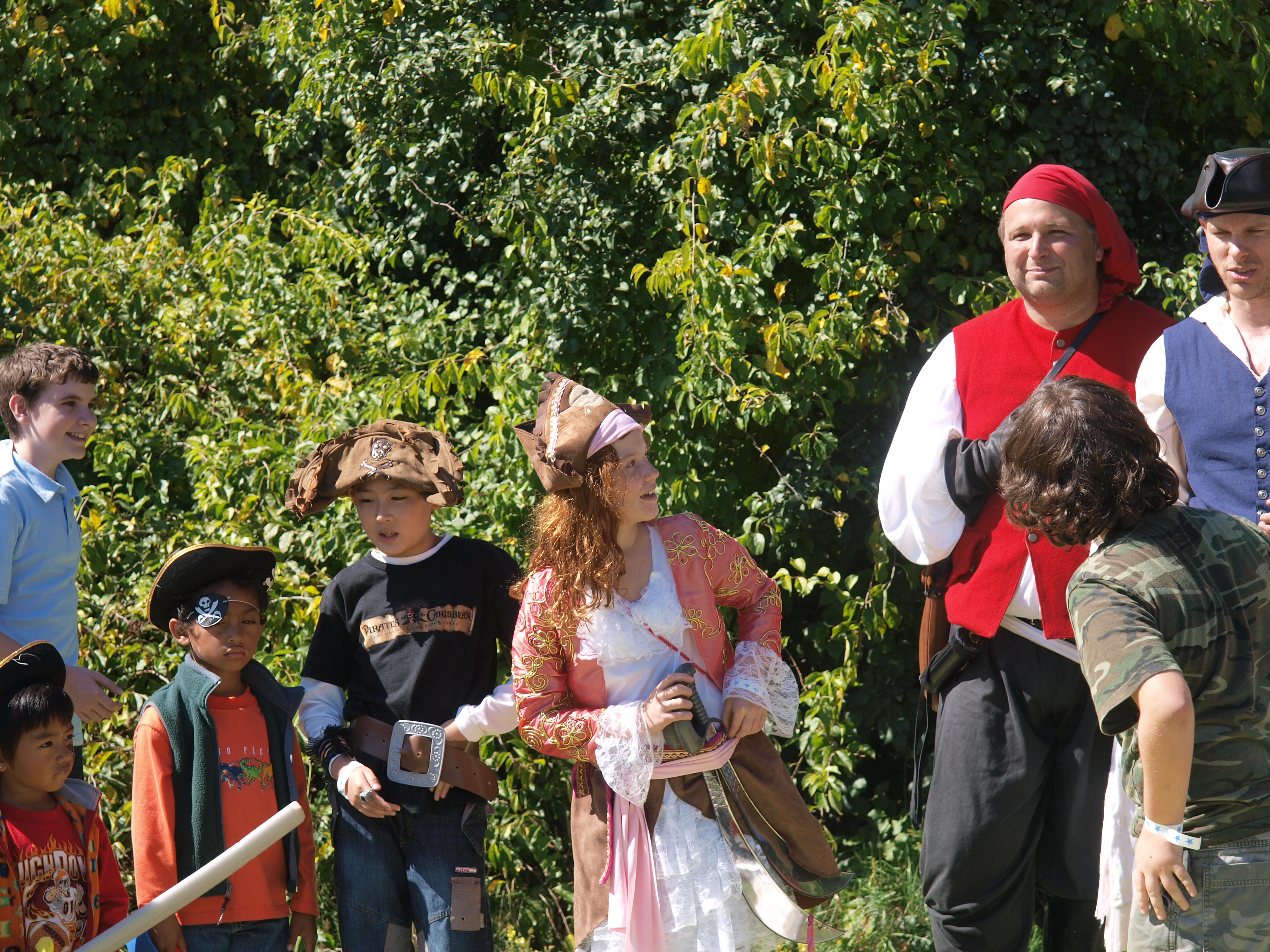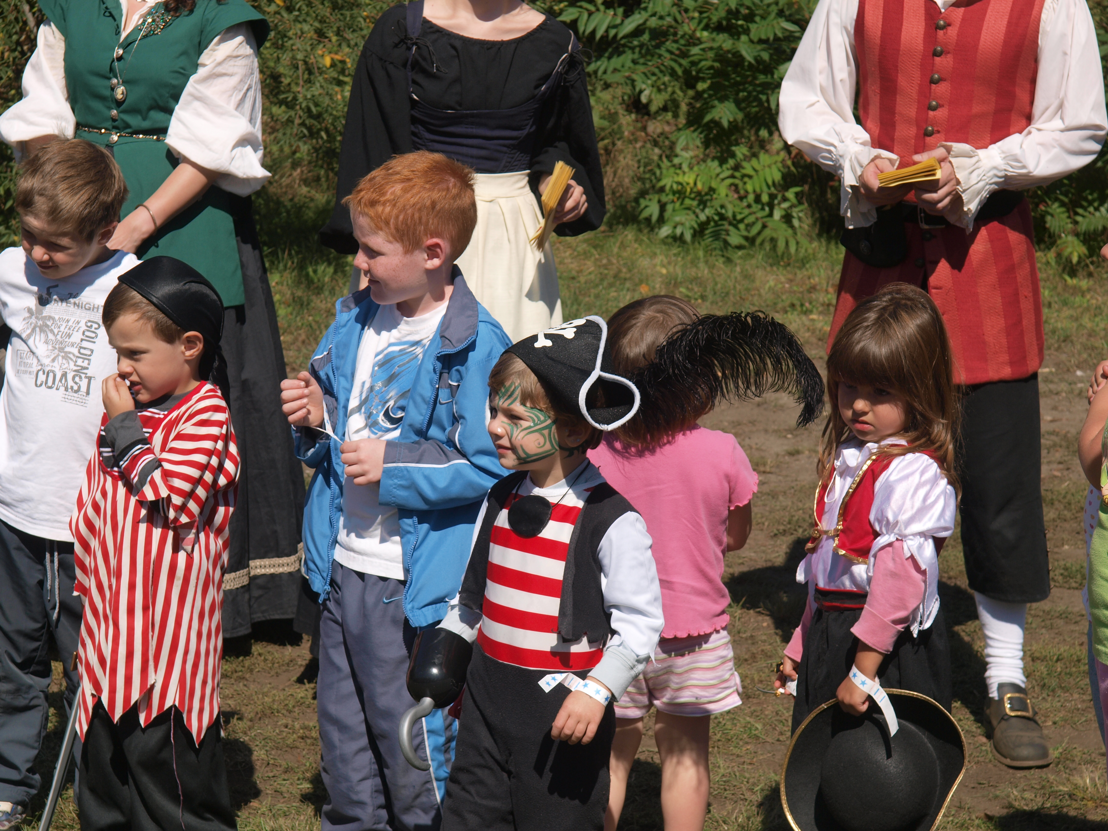 Picture #36: Young pirates Small: 912x700, 194,706 bytes (191K), (html file) Large: 3648x2736, 4,636,912 bytes (4.4M), (html file) Copyright, Michael Meissner 2008, All rights reserved Olympus E-3 camera with Olympus 14-54mm f/2.8-3.5 lens f/5.0, ISO 100, 1/250 sec, 54.0mm, auto mode, natural color, auto gradation, matrix metering, auto + manual focus, noise reduction 35mm equivalent focal length 108.0mm Taken by Michael Meissner on September 20, 2008 13:14:43 Last modified on October 22, 2008 at 08:36 |