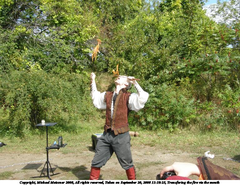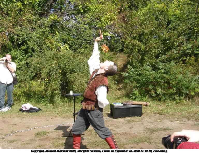 Picture #15: Transfering the fire via the mouth #2 Small: 768x592, 179,340 bytes (176K), (html file) Large: 3072x2304, 3,067,799 bytes (2.9M), (html file) Copyright, Michael Meissner 2008, All rights reserved Olympus SP-550UZ camera f/5.6, ISO 50, 1/100 sec, 7.8mm, auto mode, HQ, matrix metering 35mm equivalent focal length 47.0mm Taken by Michael Meissner on September 20, 2008 11:18:25 Last modified on October 22, 2008 at 08:27 |