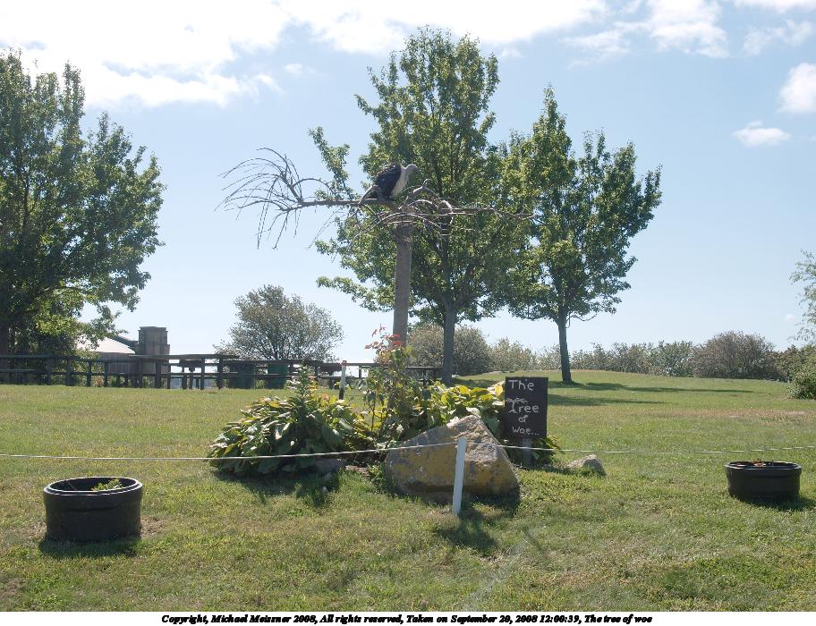 Picture #28: The tree of woe Small: 912x700, 171,053 bytes (168K), (html file) Large: 3648x2736, 9,564,898 bytes (9.1M), (html file) Copyright, Michael Meissner 2008, All rights reserved Olympus E-3 camera with Olympus 14-54mm f/2.8-3.5 lens f/7.1, ISO 100, 1/400 sec, 25.0mm, auto mode, natural color, auto gradation, matrix metering, auto + manual focus, noise reduction 35mm equivalent focal length 50.0mm Programs used: gimp Taken by Michael Meissner on September 20, 2008 12:00:39 Last modified on October 22, 2008 at 08:32 |