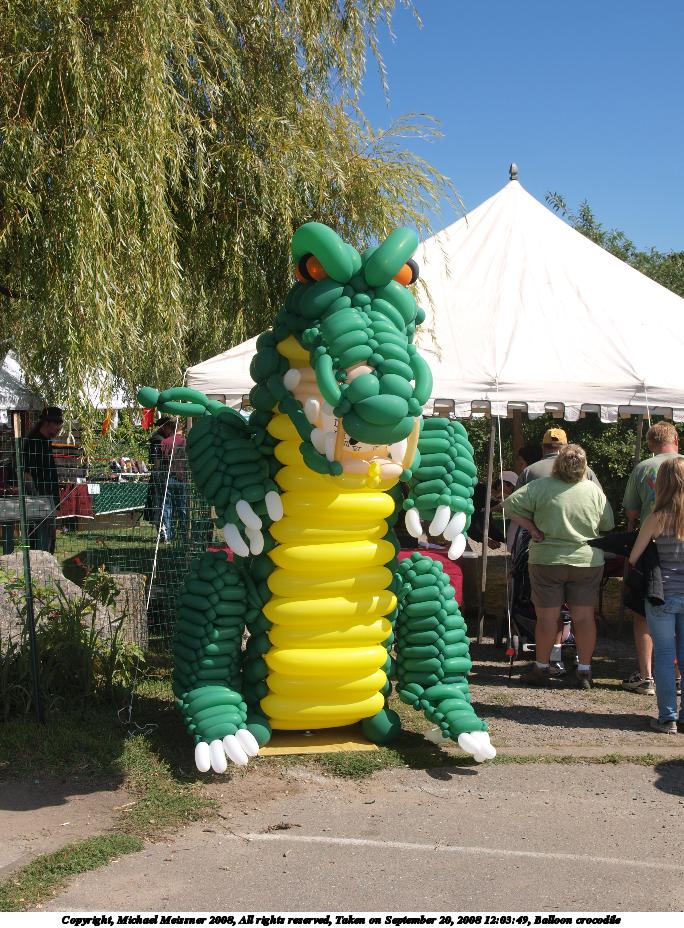 Picture #1: Balloon crocodile Small: 576x784, 98,858 bytes (97K), (html file) Large: 2304x3072, 4,834,081 bytes (4.6M), (html file) Copyright, Michael Meissner 2008, All rights reserved Olympus SP-550UZ camera f/5.6, ISO 50, 1/250 sec, 11.5mm, auto mode, HQ, matrix metering 35mm equivalent focal length 69.0mm Programs used: gimp, rotate Taken by Michael Meissner on September 20, 2008 10:27:57 Last modified on October 22, 2008 at 08:23 |