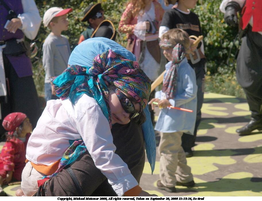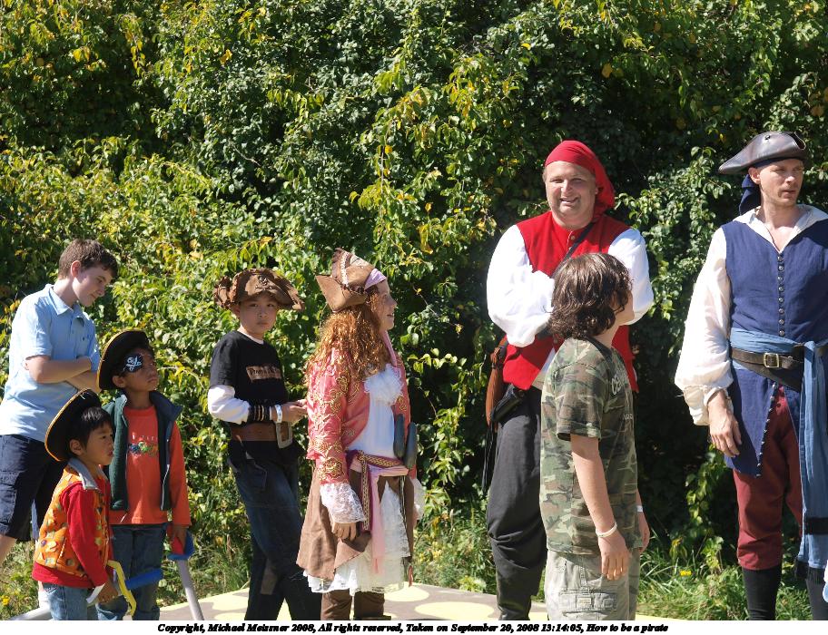 Picture #34: How to be a pirate Small: 912x700, 206,792 bytes (202K), (html file) Large: 3648x2736, 4,263,830 bytes (4.1M), (html file) Copyright, Michael Meissner 2008, All rights reserved Olympus E-3 camera with Olympus 14-54mm f/2.8-3.5 lens f/5.6, ISO 100, 1/250 sec, 42.0mm, auto mode, natural color, auto gradation, matrix metering, manual focus, noise reduction 35mm equivalent focal length 84.0mm Taken by Michael Meissner on September 20, 2008 13:14:05 Last modified on October 22, 2008 at 08:35 |