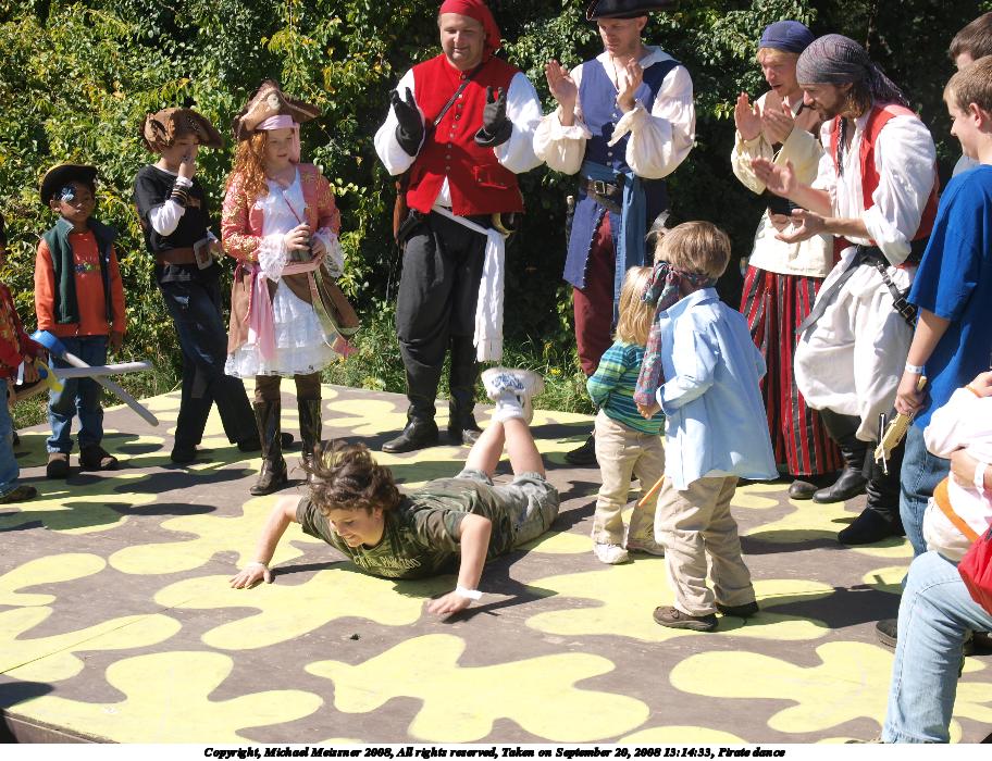 Picture #35: Pirate dance Small: 912x700, 172,422 bytes (169K), (html file) Large: 3648x2736, 5,387,138 bytes (5.1M), (html file) Copyright, Michael Meissner 2008, All rights reserved Olympus E-3 camera with Olympus 14-54mm f/2.8-3.5 lens f/6.3, ISO 100, 1/250 sec, 31.0mm, auto mode, natural color, auto gradation, matrix metering, auto + manual focus, noise reduction 35mm equivalent focal length 62.0mm Taken by Michael Meissner on September 20, 2008 13:14:33 Last modified on October 22, 2008 at 08:36 |