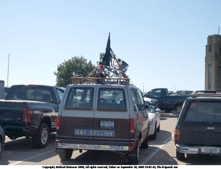 Picture #56: The brigands van Small: 912x700, 93,612 bytes (92K), (html file) Large: 3648x2736, 7,093,650 bytes (6.8M), (html file) Copyright, Michael Meissner 2008, All rights reserved Olympus E-3 camera with Olympus 14-54mm f/2.8-3.5 lens f/7.1, ISO 100, 1/400 sec, 31.0mm, auto mode, natural color, auto gradation, matrix metering, auto + manual focus, noise reduction 35mm equivalent focal length 62.0mm Taken by Michael Meissner on September 20, 2008 14:03:42 Last modified on October 22, 2008 at 08:51 |
