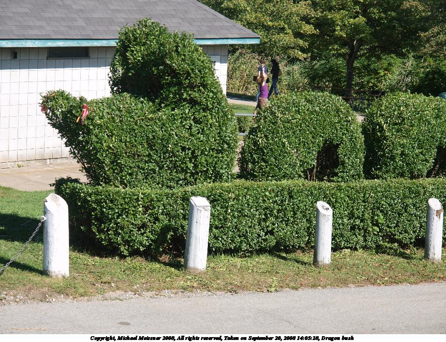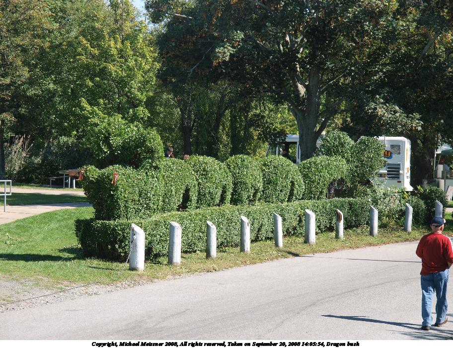 Picture #57: Dragon bush Small: 912x700, 238,385 bytes (233K), (html file) Large: 3648x2736, 3,738,414 bytes (3.6M), (html file) Copyright, Michael Meissner 2008, All rights reserved Olympus E-3 camera with Olympus 14-54mm f/2.8-3.5 lens f/5.6, ISO 100, 1/320 sec, 54.0mm, auto mode, natural color, auto gradation, matrix metering, auto + manual focus, noise reduction 35mm equivalent focal length 108.0mm Taken by Michael Meissner on September 20, 2008 14:05:28 Last modified on October 22, 2008 at 08:53 |