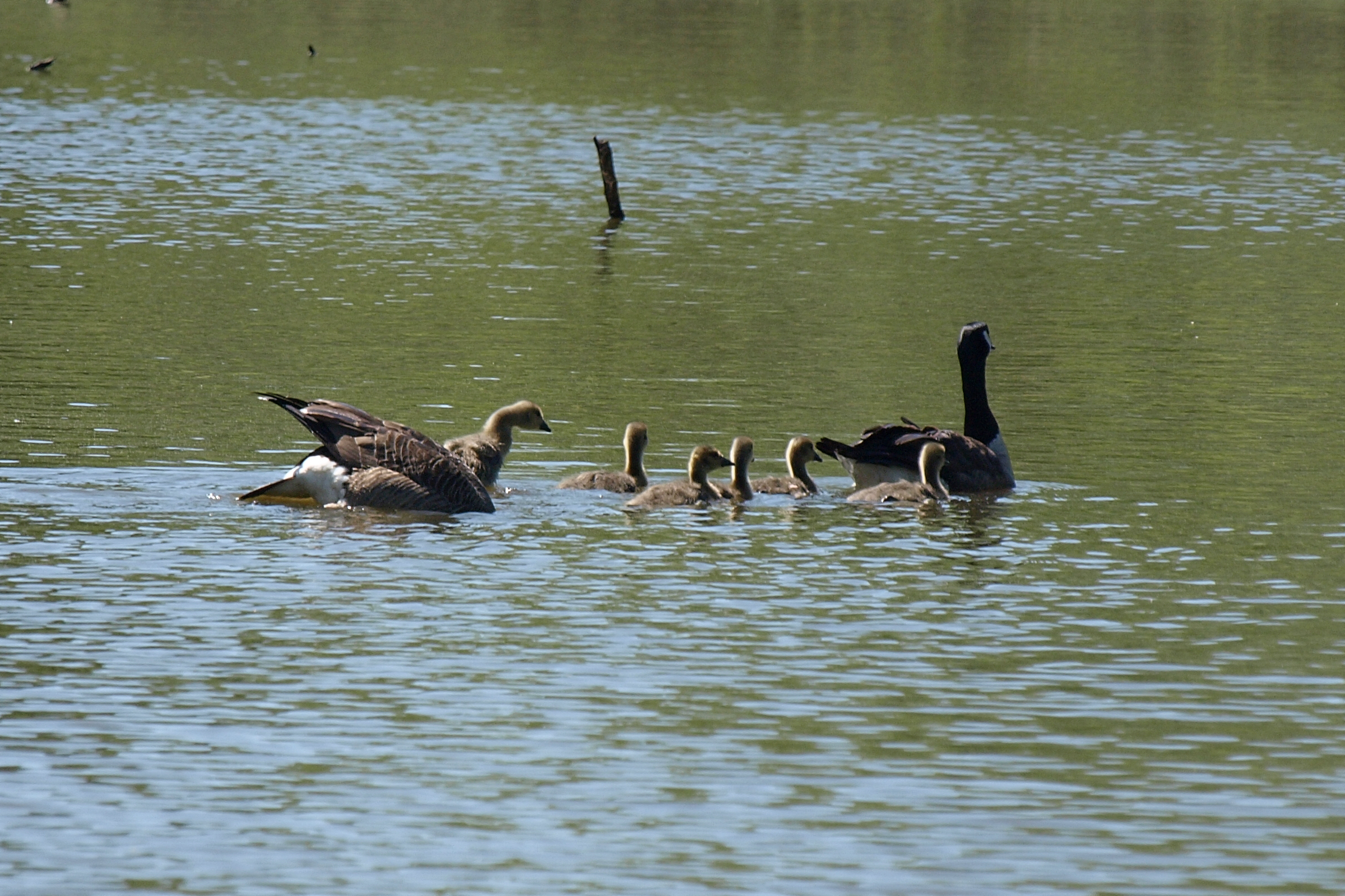 Picture #87: Geese and goslings Small: 1200x816, 156,439 bytes (153K), (html file) Large: 2400x1600, 3,135,165 bytes (3.0M), (html file) Copyright, Michael Meissner 2008, All rights reserved Olympus E-510 camera with Olympus 50-200mm f/2.8-3.5 lens and Olympus EC-14 (1.4x) f/7.1, ISO 200, 1/400 sec, 283.0mm, auto mode, natural color, SHQ, matrix metering, -1 sharpening, IS1 (All Direction Shake IS), noise filter low 35mm equivalent focal length 567.0mm, EC-14 Programs used: gimp Taken by Michael Meissner on May 26, 2008 10:08:03 Last modified on June 01, 2008 at 16:32 |
